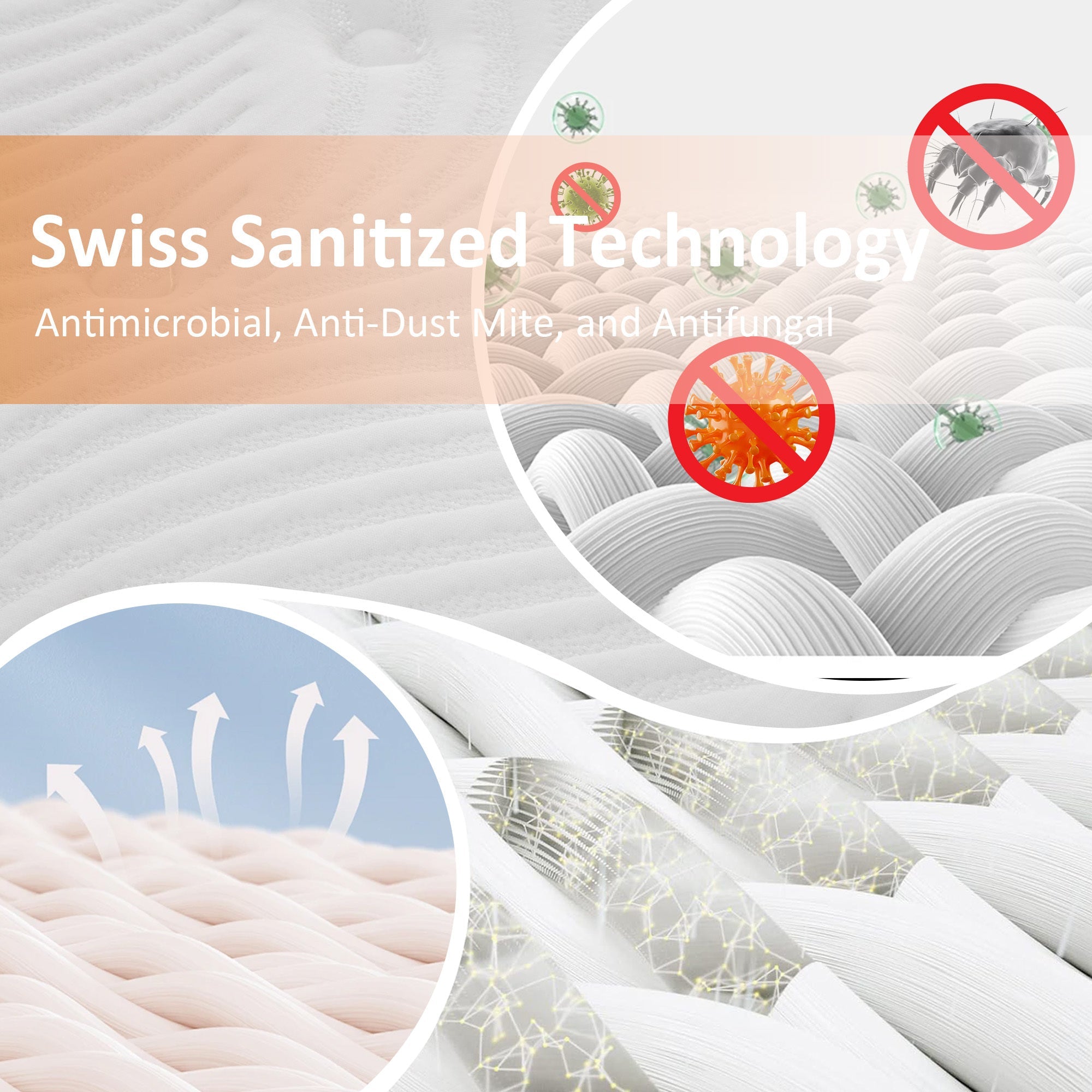 - High-Quality Material: By combining Tencel, Sanitized, and gel memory foam, our mattresses effectively ward off bacteria, dust mites, mold, and yellowing. They also regulate temperature, enhance heat dissipation, and improve breathability, moisture-wicking, and skin-friendliness—creating an ideal environment for your peaceful sleep.