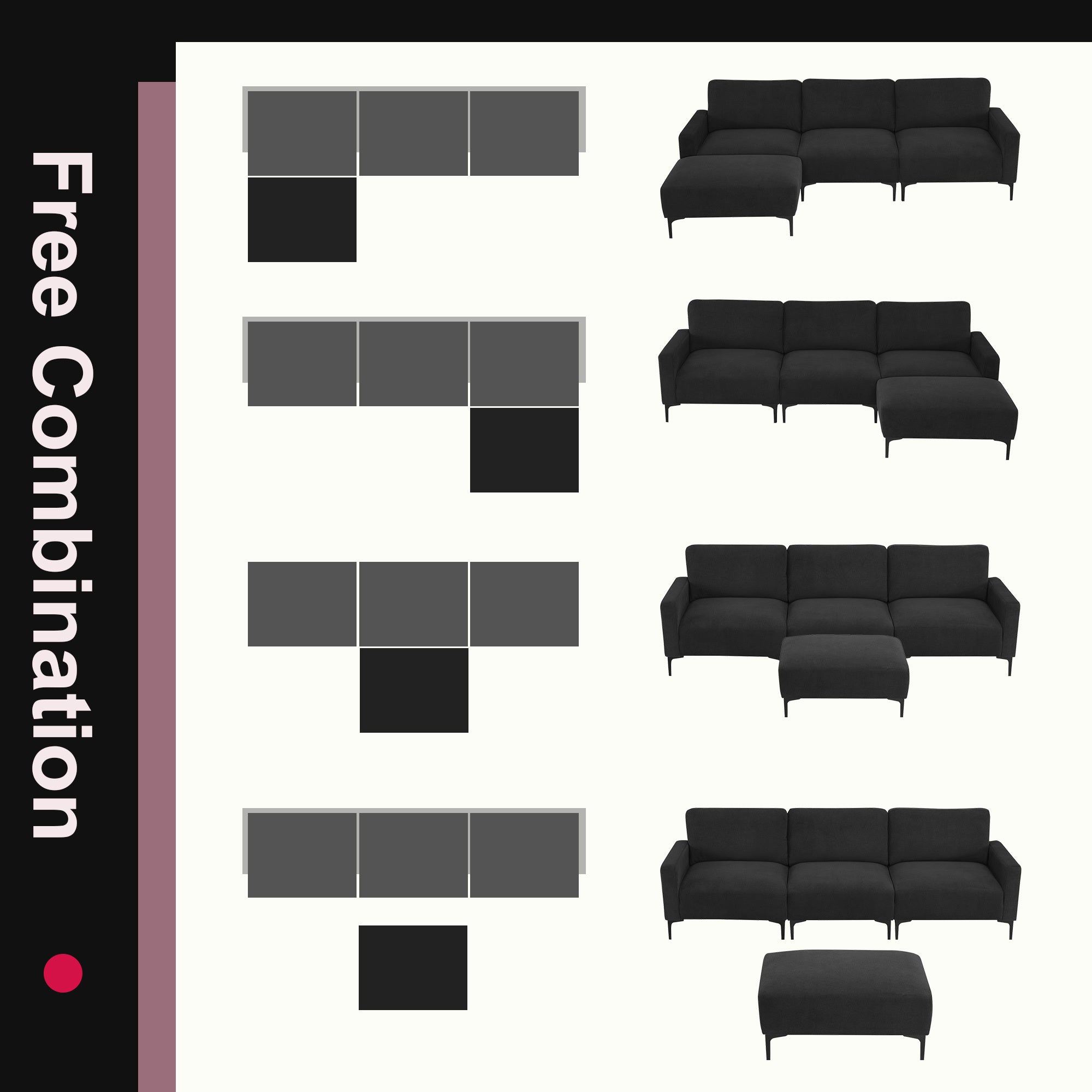 - Convertible Ottoman: You can put the convertible ottoman anywhere so that the sofa will have more possibilities and fun. You can set as many positions and shapes as you like.