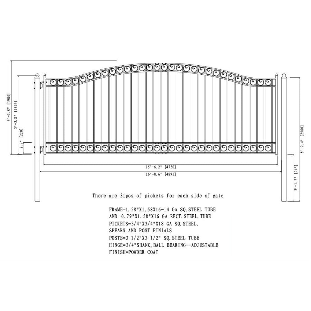 • Constructed with heavy-duty galvanized steel and a powder paint coating, this gate is built to last. It resists rust, corrosion, and weather damage, ensuring long-term beauty and functionality.