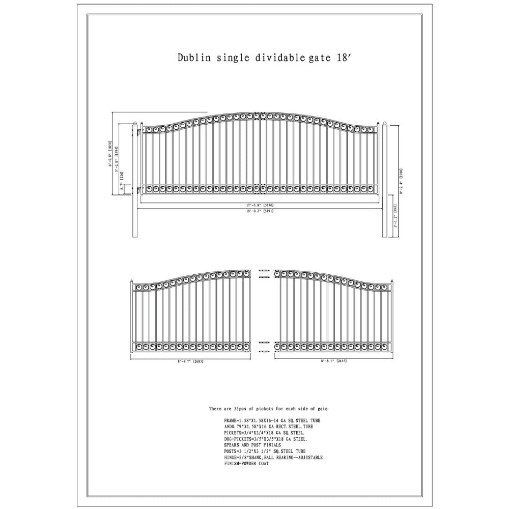 • The Dublin Style Single Swing Driveway Gate brings the timeless grandeur of historic wrought iron gates to your home. Its stylish design enhances your property’s curb appeal and adds a touch of sophistication.