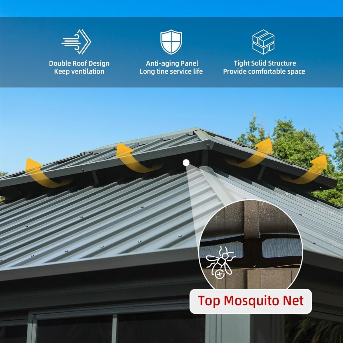 FREE USA SHIPPING. Your Large Heavy Duty All-Season Steel Top Aluminum Double Roof Backyard Gazebo will be packed and shipped within 1-3 business days and delivered to you between 5-10 business days.