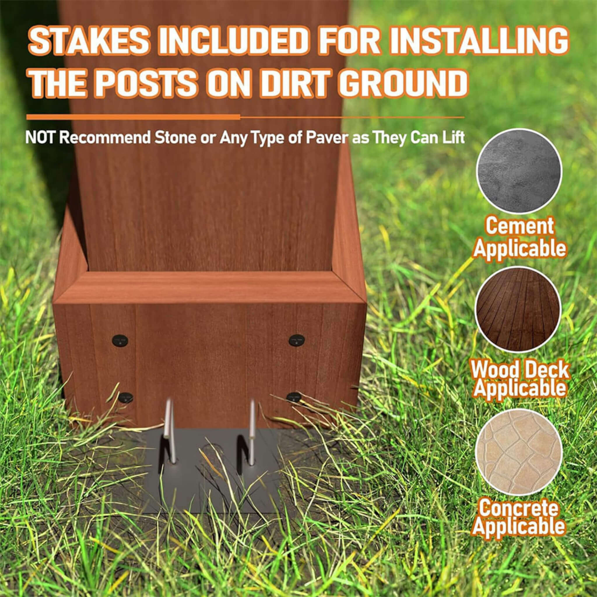 - Setting up your new garden oasis is a breeze with the included stakes, allowing you to mount the pergola to grass, wood deck, or cement. For those seeking enhanced stability, expansion screws can be used (not included).