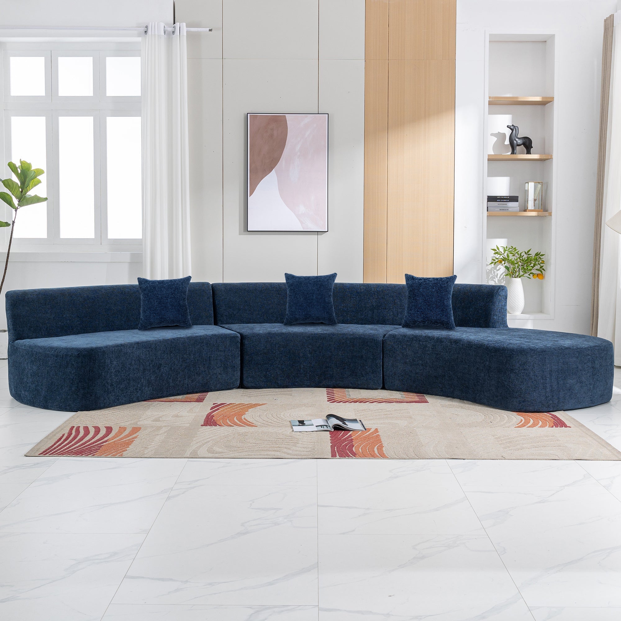 Be the first to review “136.6″ Stylish Curved sofa Sectional Sofa Chenille Fabric Sofa Couch with Three Throw Pillows for Living Room, Blue” Cancel reply