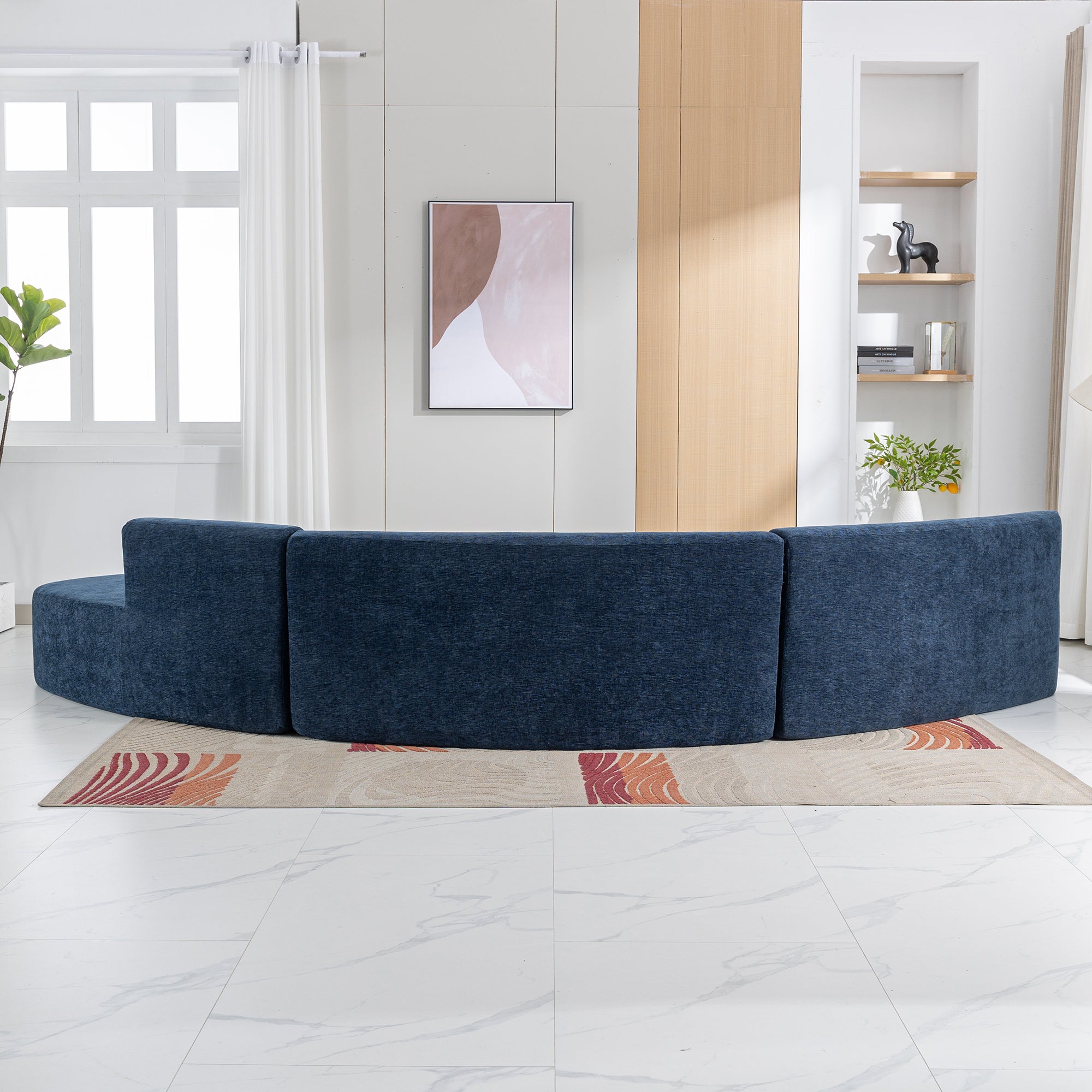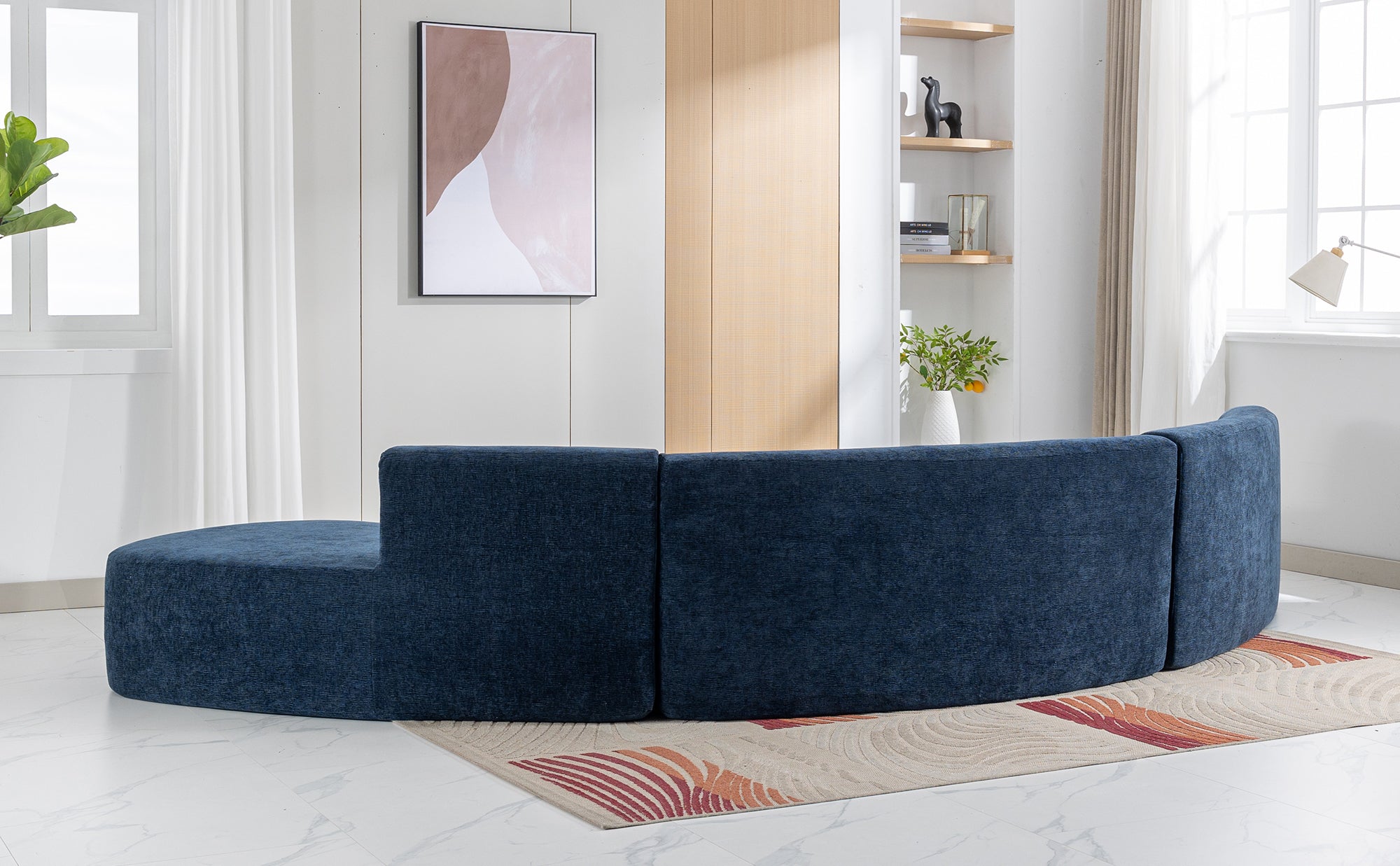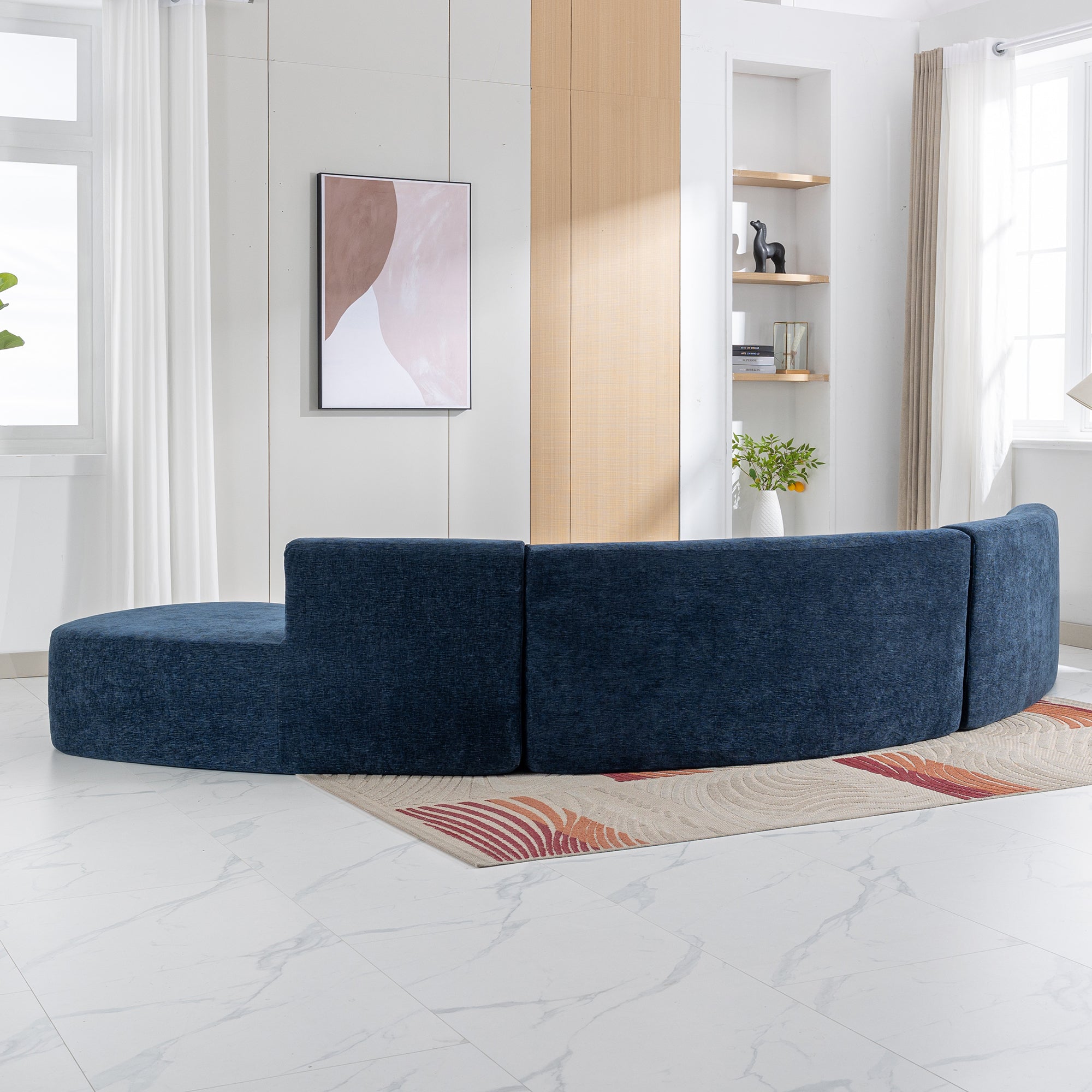 - Stylish and Functional Sofa – This curved sofa is designed to be both stylish and functional. The absence of legs allows this sofa to flow with elegance. What’s more, it also provides ample seating space for multiple people to relax and socialize. Its unique shape makes it a great addition to any room. Overall, this curved sofa is a must-have for those who want to make a statement with their furniture choices while maintaining comfort and functionality.