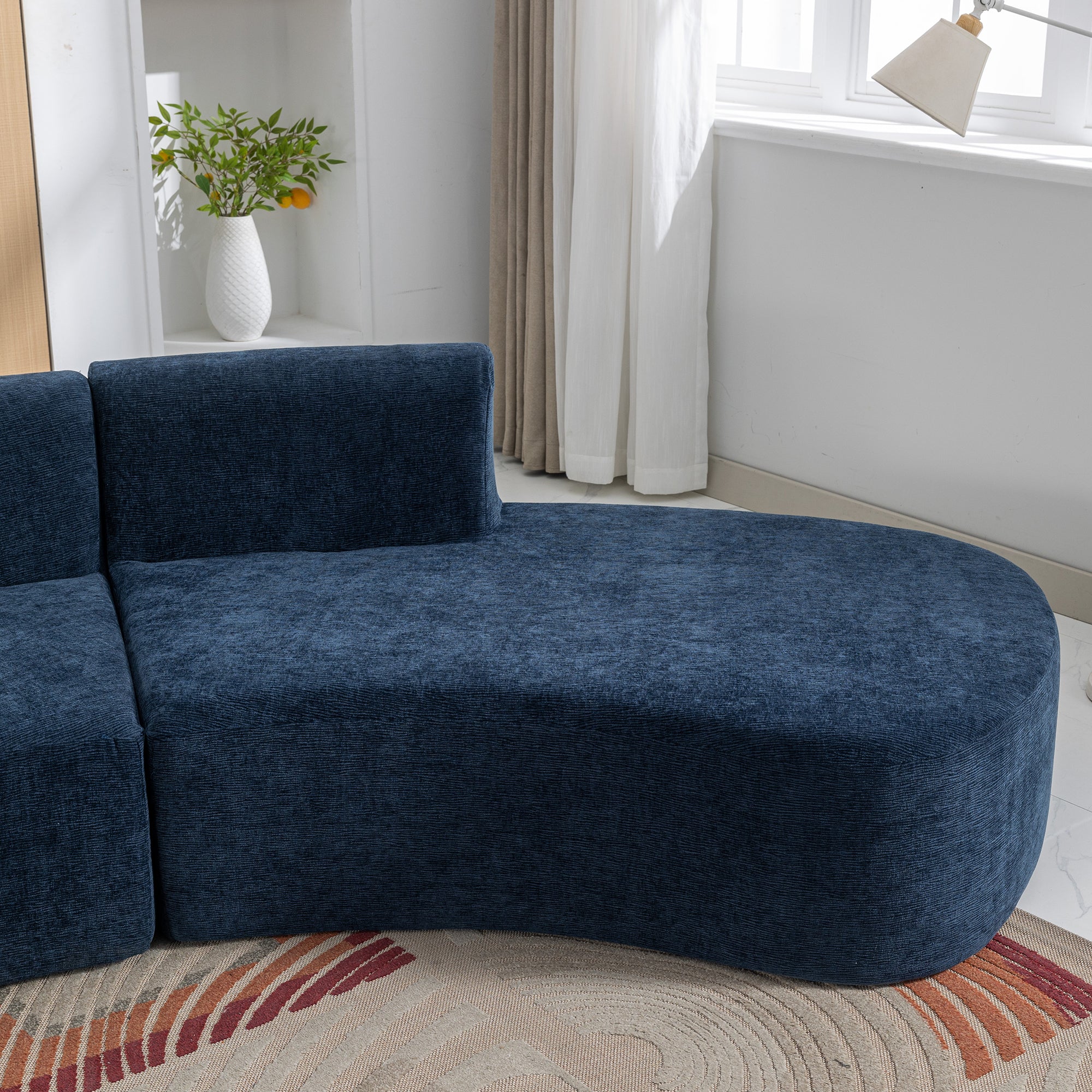 - Comfortable Chenille Fabric – This sectional curved sofa is designed with soft chenille fabric, which is skin-friendly, scratch-resistant, breathable and possesses a sense of quality. This chenille fabric highlights the contemporary style of the sofa, creating a sleek and sophisticated look.