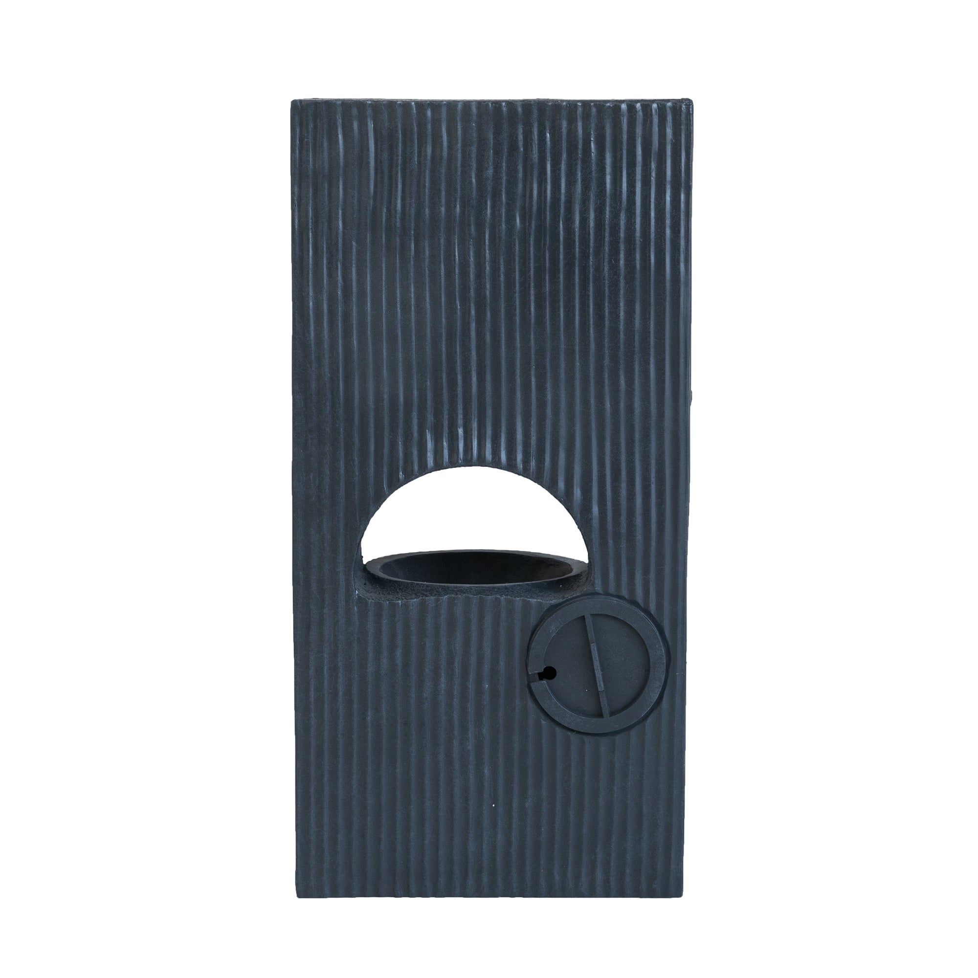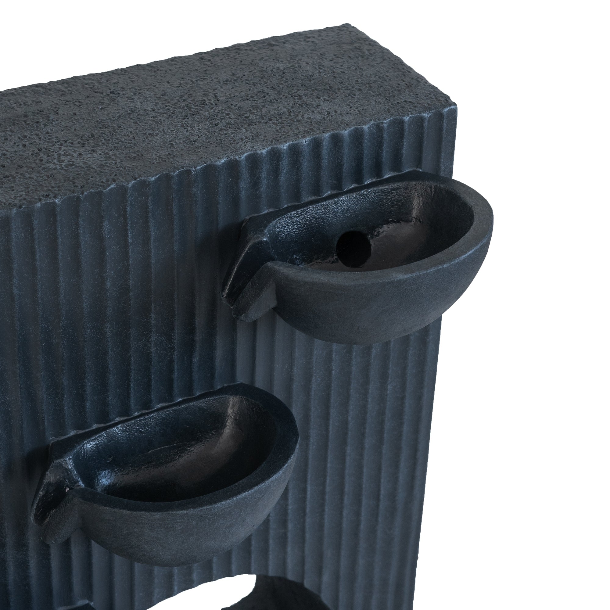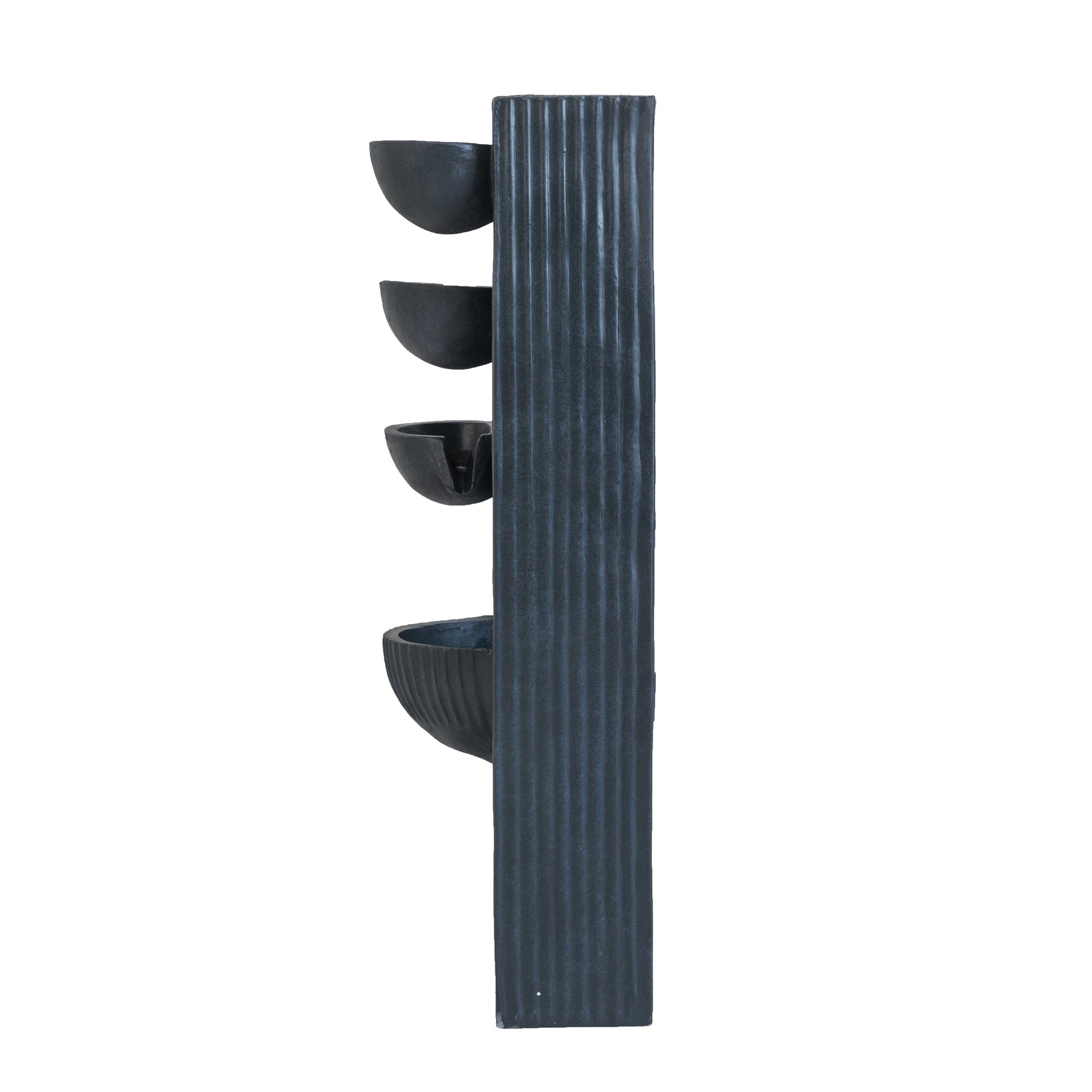 Offering a modern take on minimalist designs, this decorative fountain features a large rectangular silhouette, four curved basins that flow down to a cut-out center, and a muted vertical line motif that begs to be admired. Whether it is placed on its own or with other artistic pieces, it will thrive all the same, with the soothing flow of water spreading a soothing ambiance through your garden.