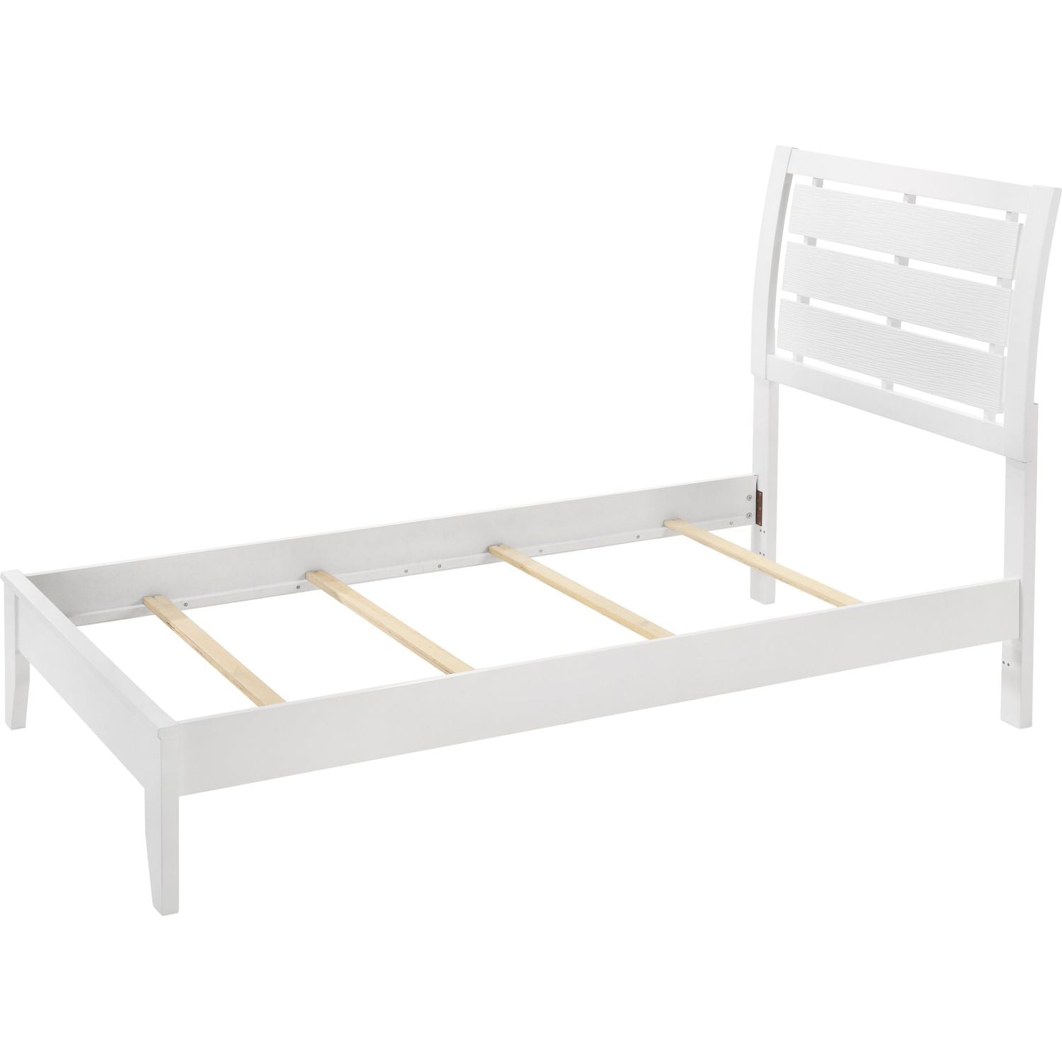 - Softly curved headboard with slat cutouts