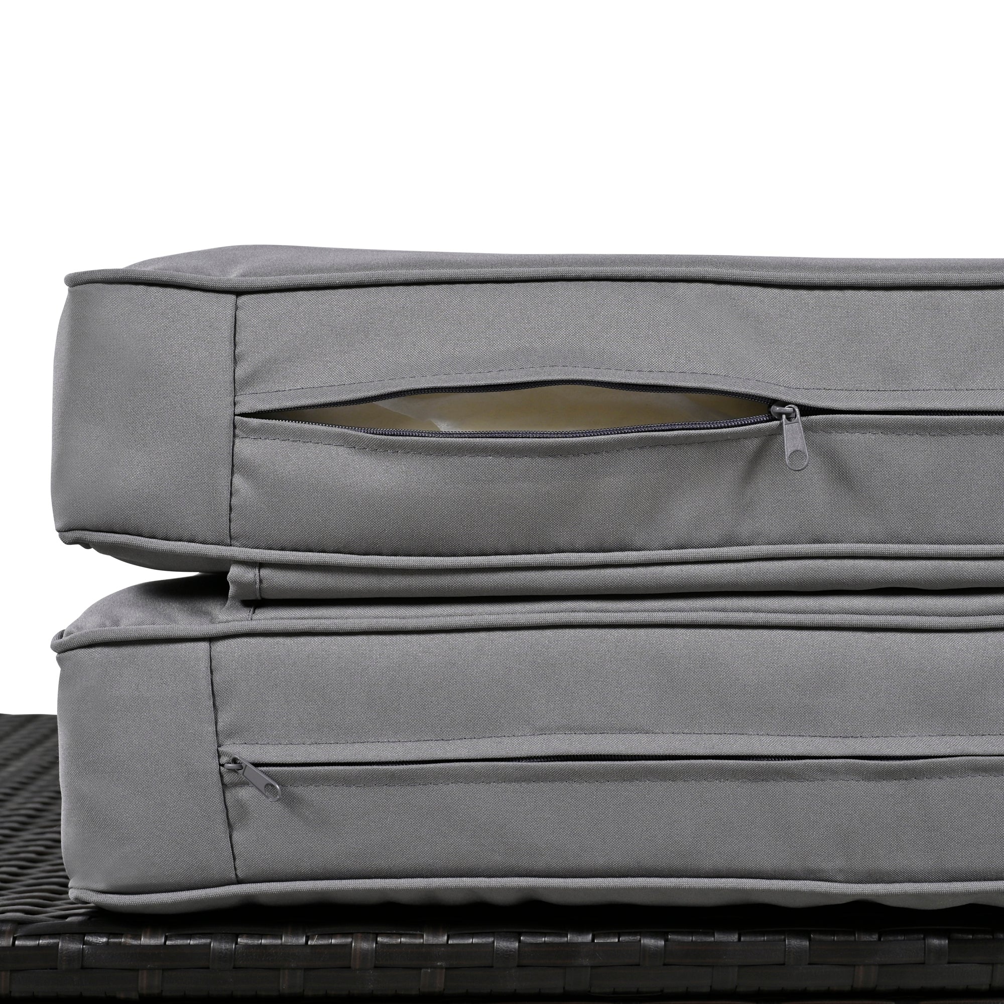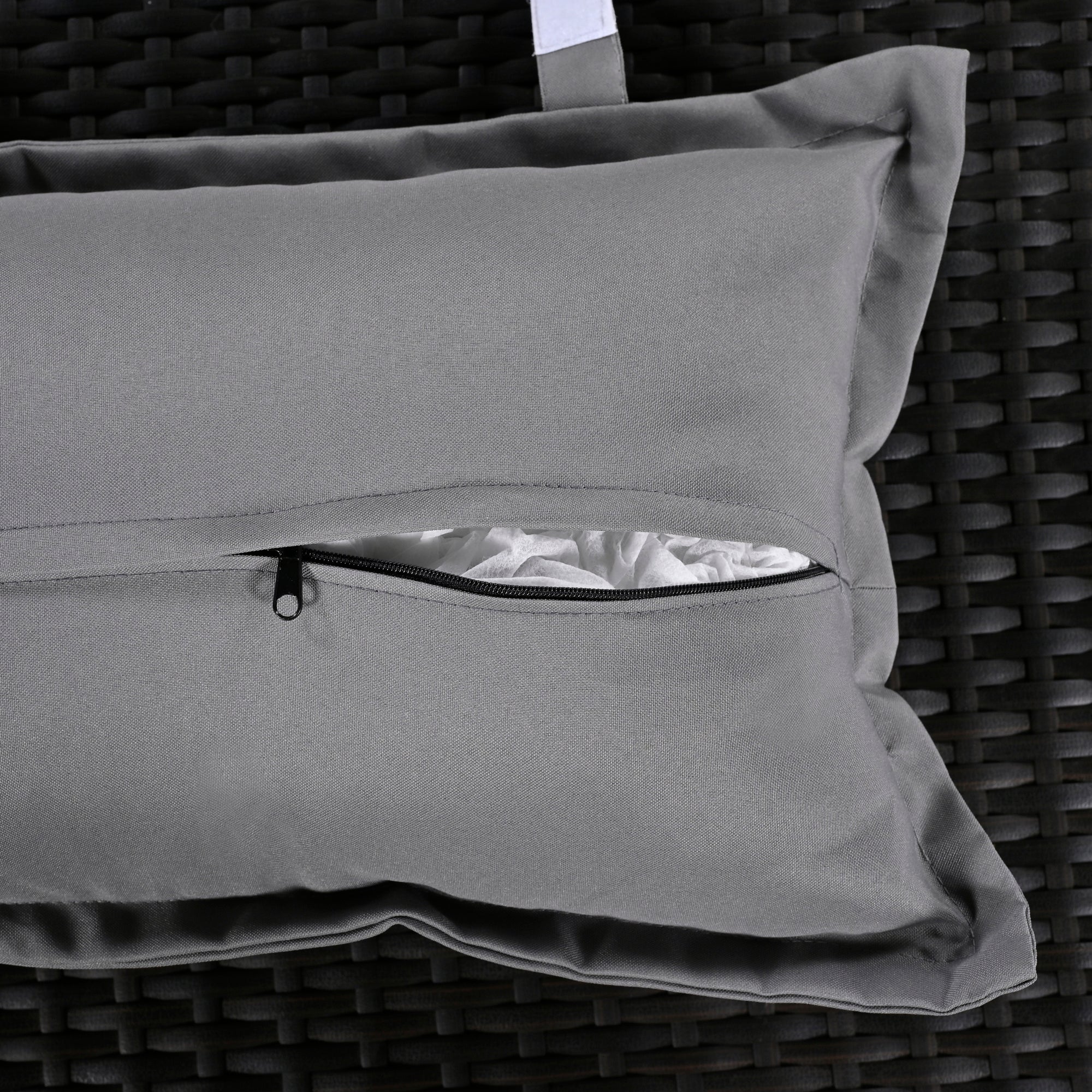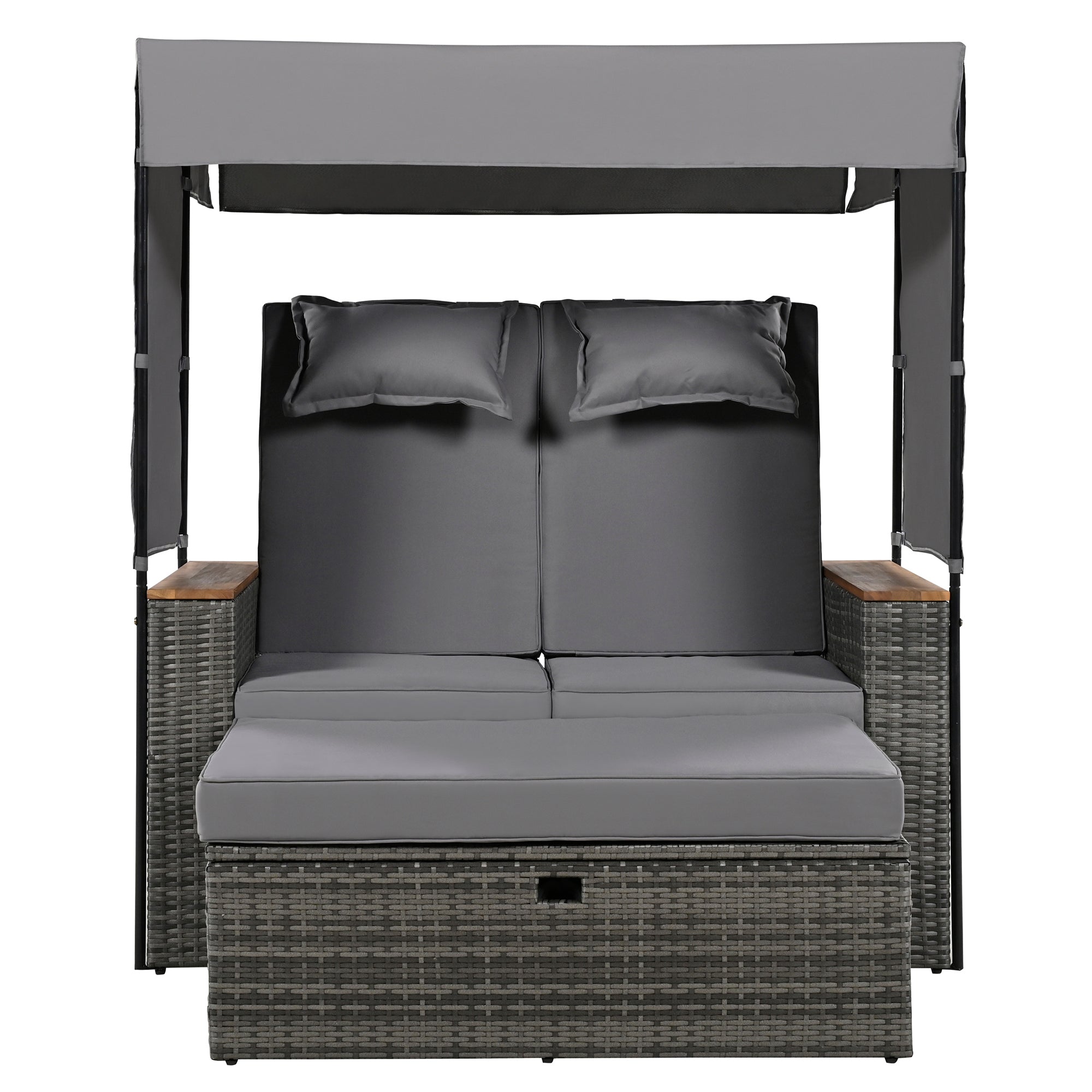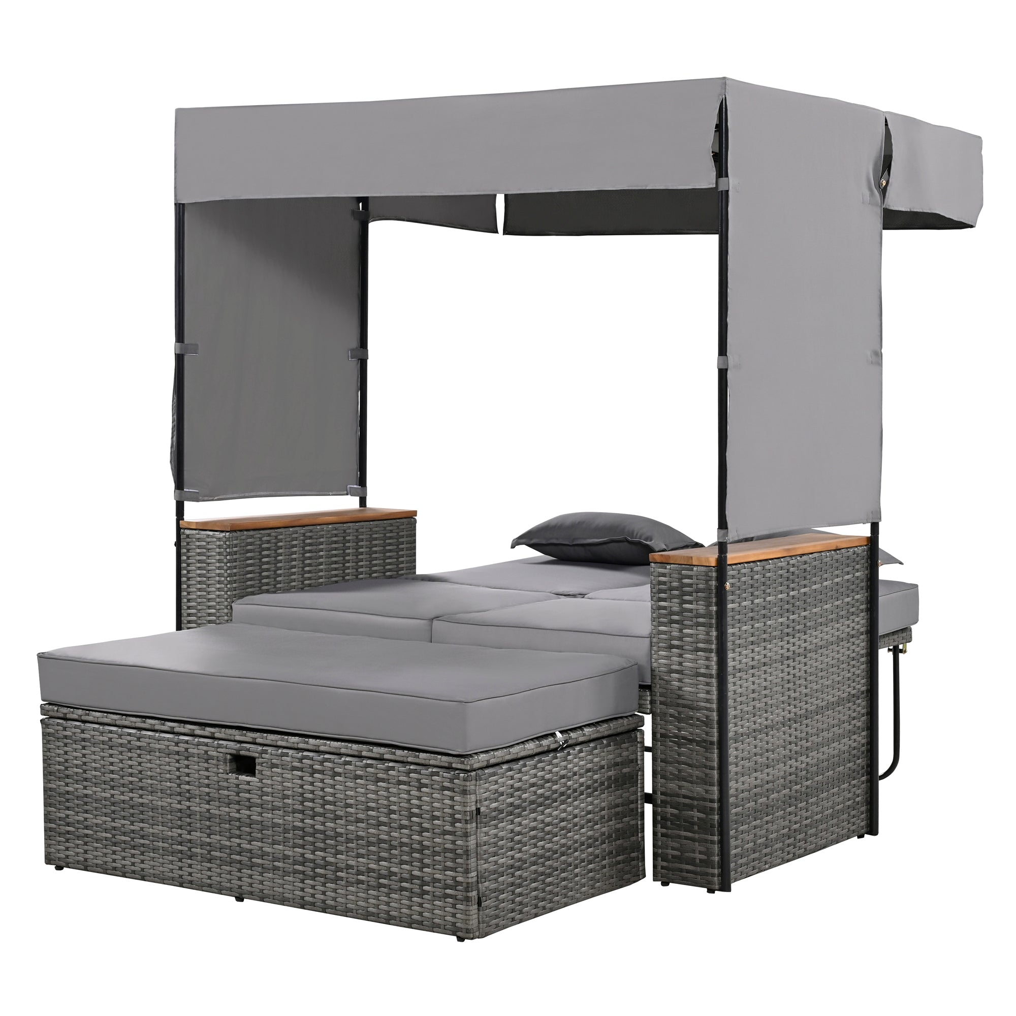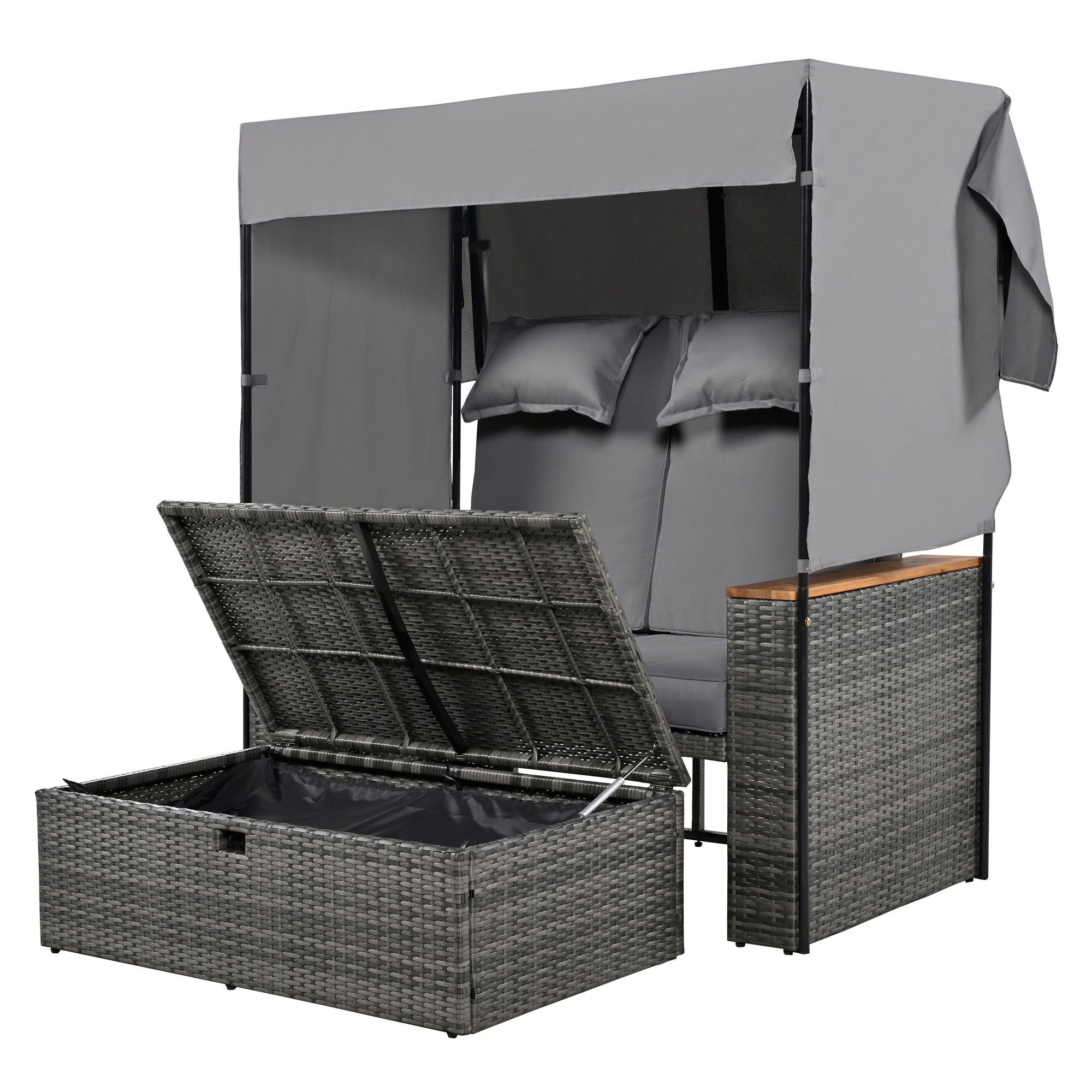 2-Piece Rattan Outdoor Patio Bench Lounge Roof Set, Effective UV Protection Fabric & Waterproof Cushions and Adjustable Backrest for Garden, Backyard and Porch (Grey Wicker + Grey Fabric)
