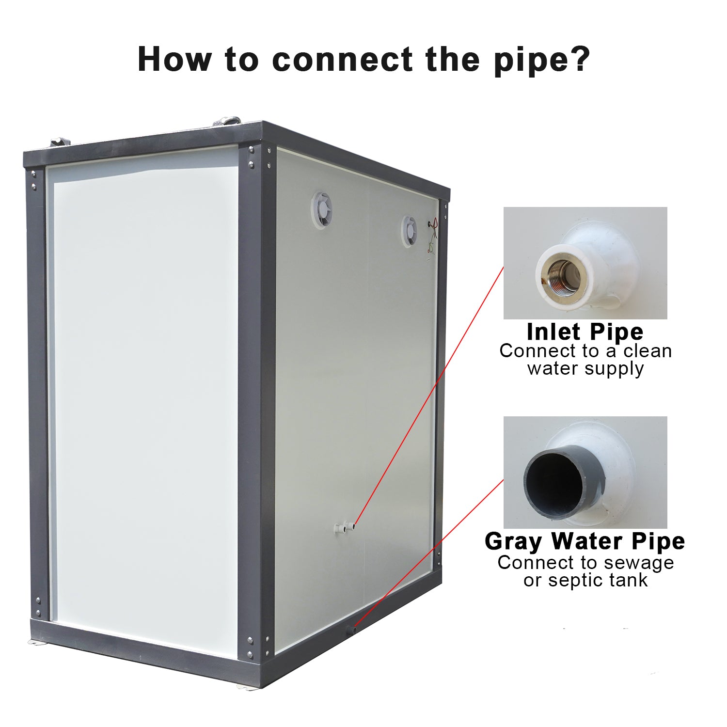 If this Bastone 2 Private Mobile Shower Room is used on a construction site, we recommend you connect cold water to the pipe system, and hot water to the heating burner. If not, you may need tanks outside the structure for waste.