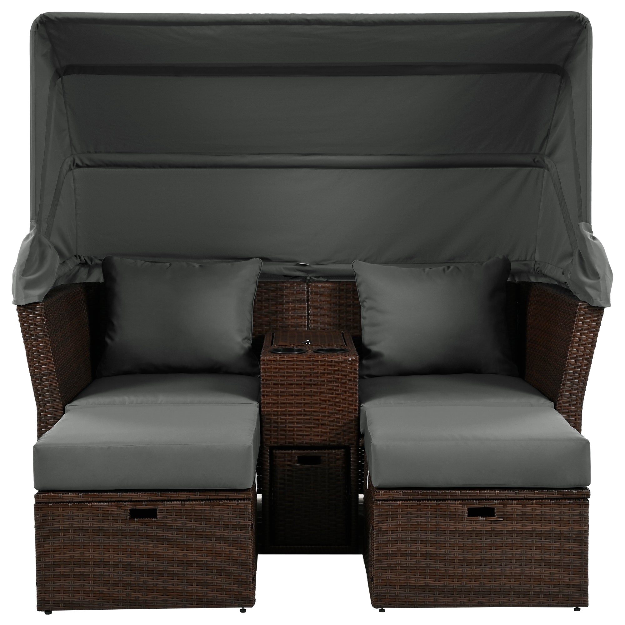 - Retractable Sunshade Canopy – The daybed is equipped with a foldable awning, offering the right amount of shade when you need it. With its retractable feature, you have full control over your comfort and can adjust the canopy to your needs. It can keep out the scalding sunlight on hot summer days or just enjoy the sunbath.