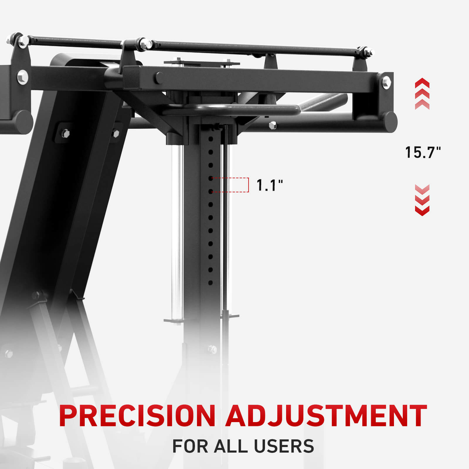 Features 15 adjustable arm height positions with precise 1.1″ intervals, ensuring a perfect fit for users of all sizes and a tailored training experience for different exercises.
