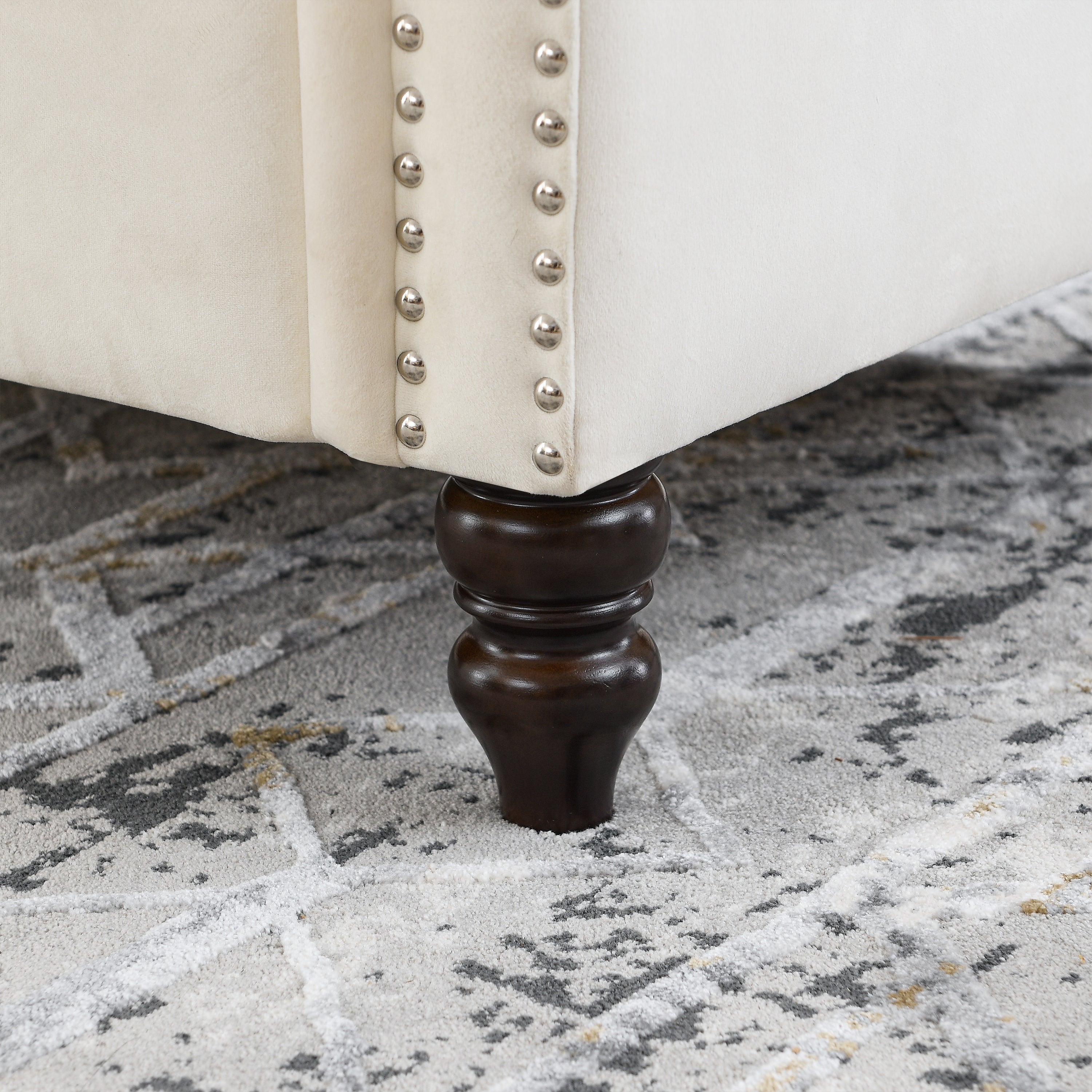 - Nailhead trim. This 3 seater sofa doesn’t skimp on decorative details. Expertly designed, this piece has a tasteful nailhead trim and adjoins the armrests. Each nailhead is applied individually and has a beautiful handcrafted touch, creating a rich and luxurious visual effect.