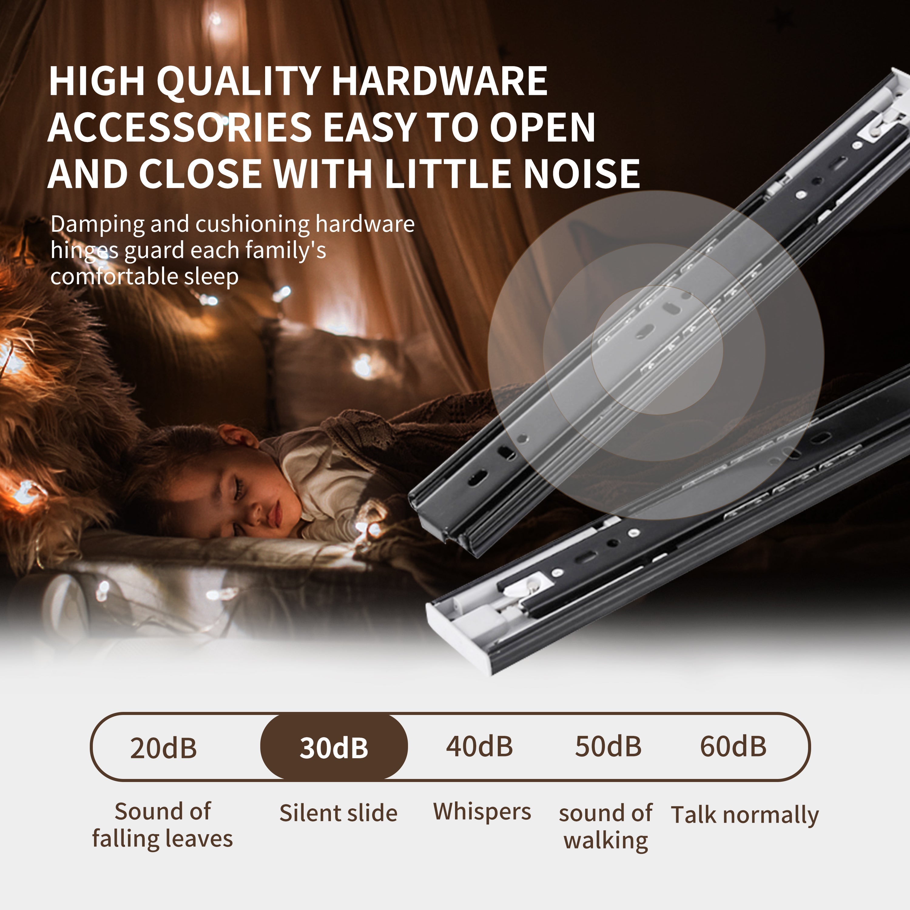 [Smooth 2/3 Extended Drawer Slide] In order to better conform to North American lifestyle habits and optimize storage space, two drawers with a soft close 2/3 extended drawer slide have been added to the product design.