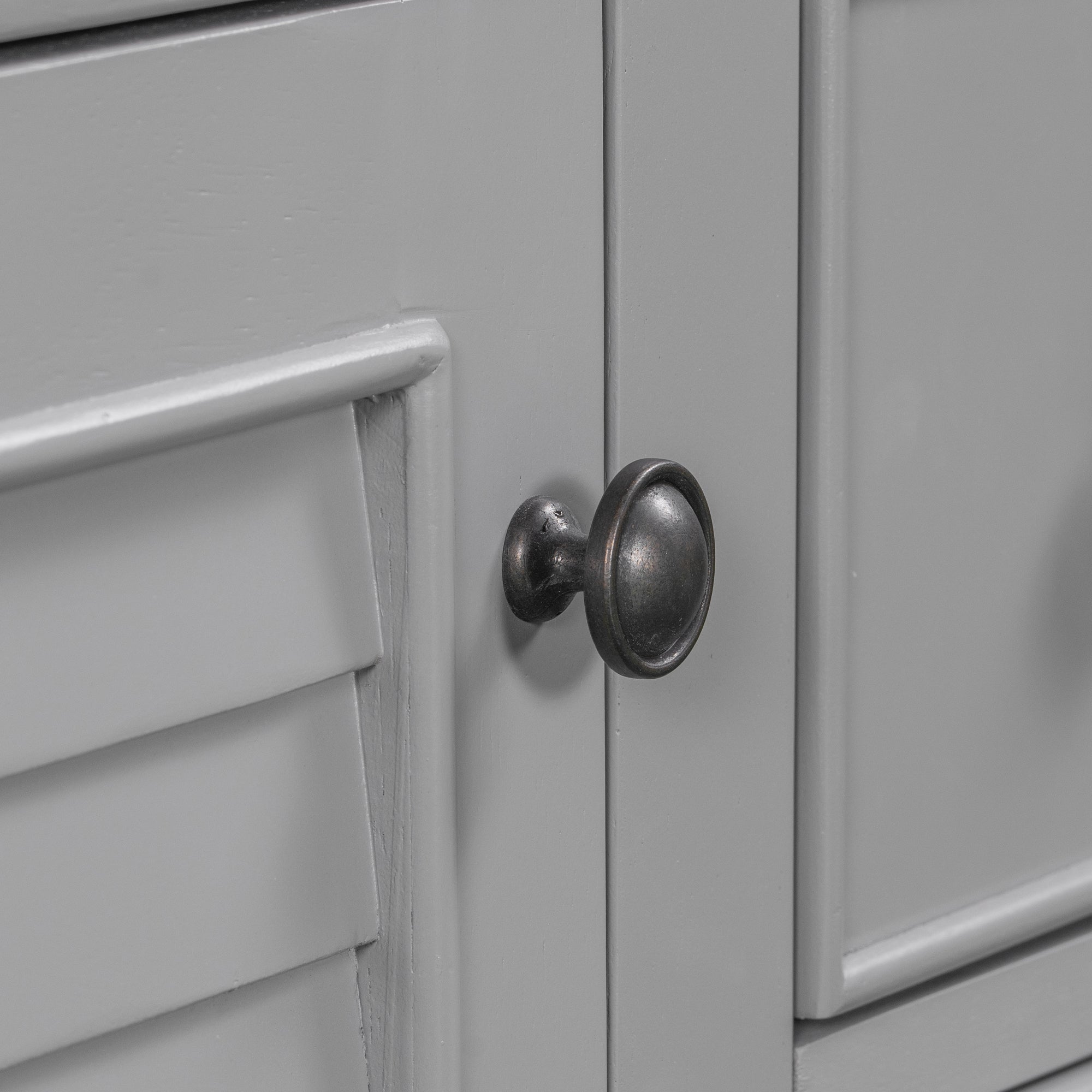 - Thoughtful Details: Considering the humid environment in the bathroom, the door hinge and drawer slide are made of stainless steel material, which is not easy to rust. The handles on the drawers and two cabinets are made of metal, creating a retro round look that is smooth to the touch and pleasant to use. In order to reduce the noise when closing the cabinet doors, the soft closing doors are selected for the cabinet doors.