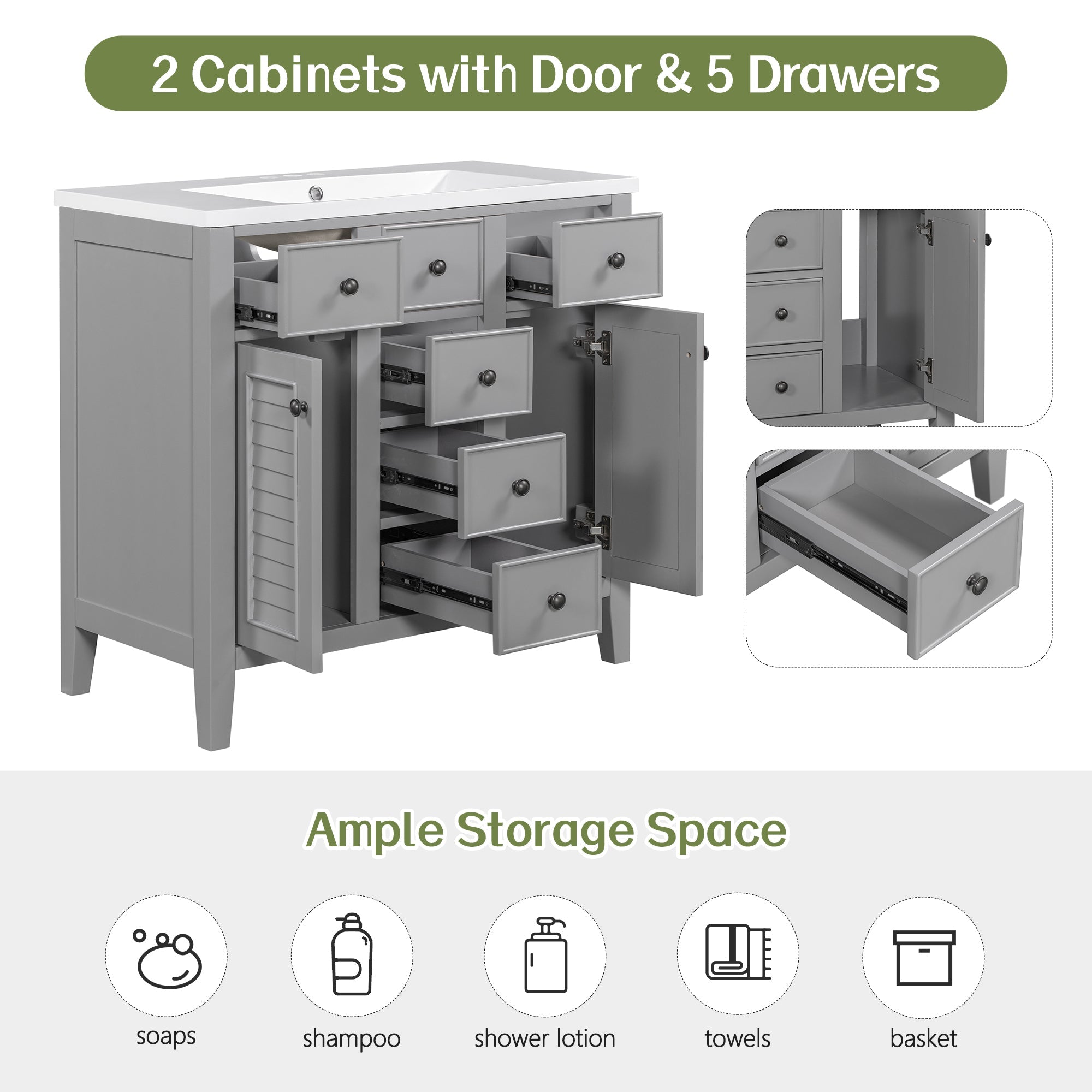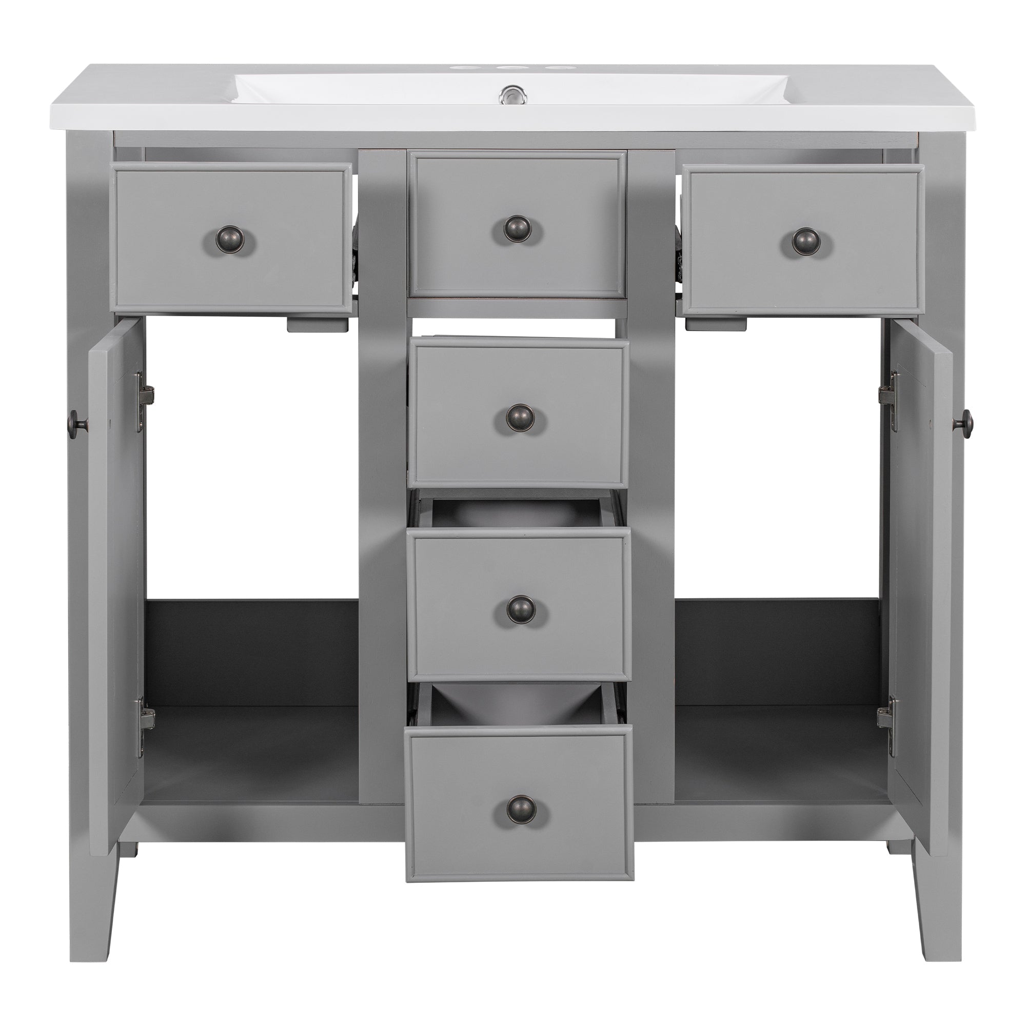 Be the first to review “36″ Bathroom Vanity with Ceramic Basin, Two Cabinets and Five Drawers, Solid Wood Frame, Grey” Cancel reply