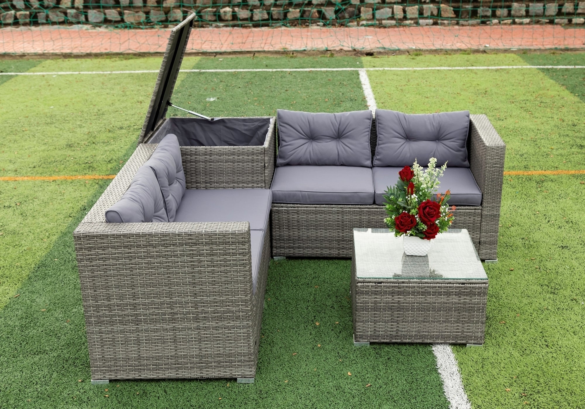4 Piece Patio Sectional Wicker Rattan Outdoor Furniture Sofa Set with Storage Box