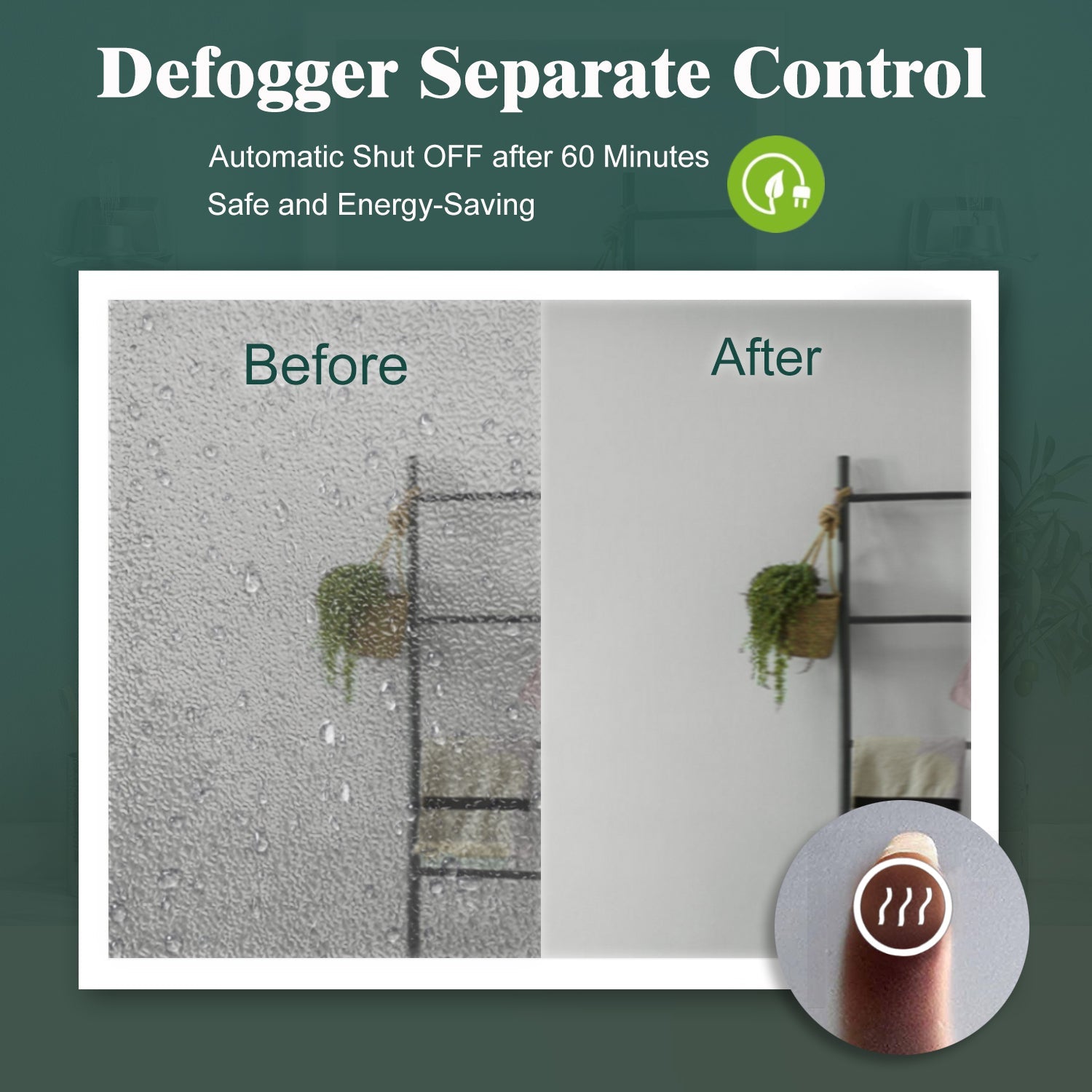 Feature: 6000K Dimmable, 10%-100% Adjustable, Anti-Fog, Smart Touch, Wall Switch Support, Horizontal/Vertical