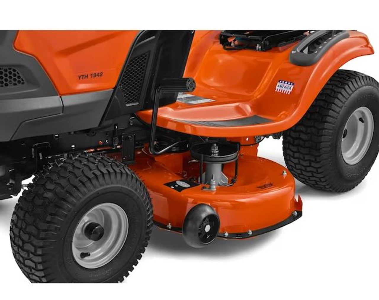 - 42 in. reinforced cutting deck with air induction mowing technology and dual anti-scalp wheels included on riding lawn mower