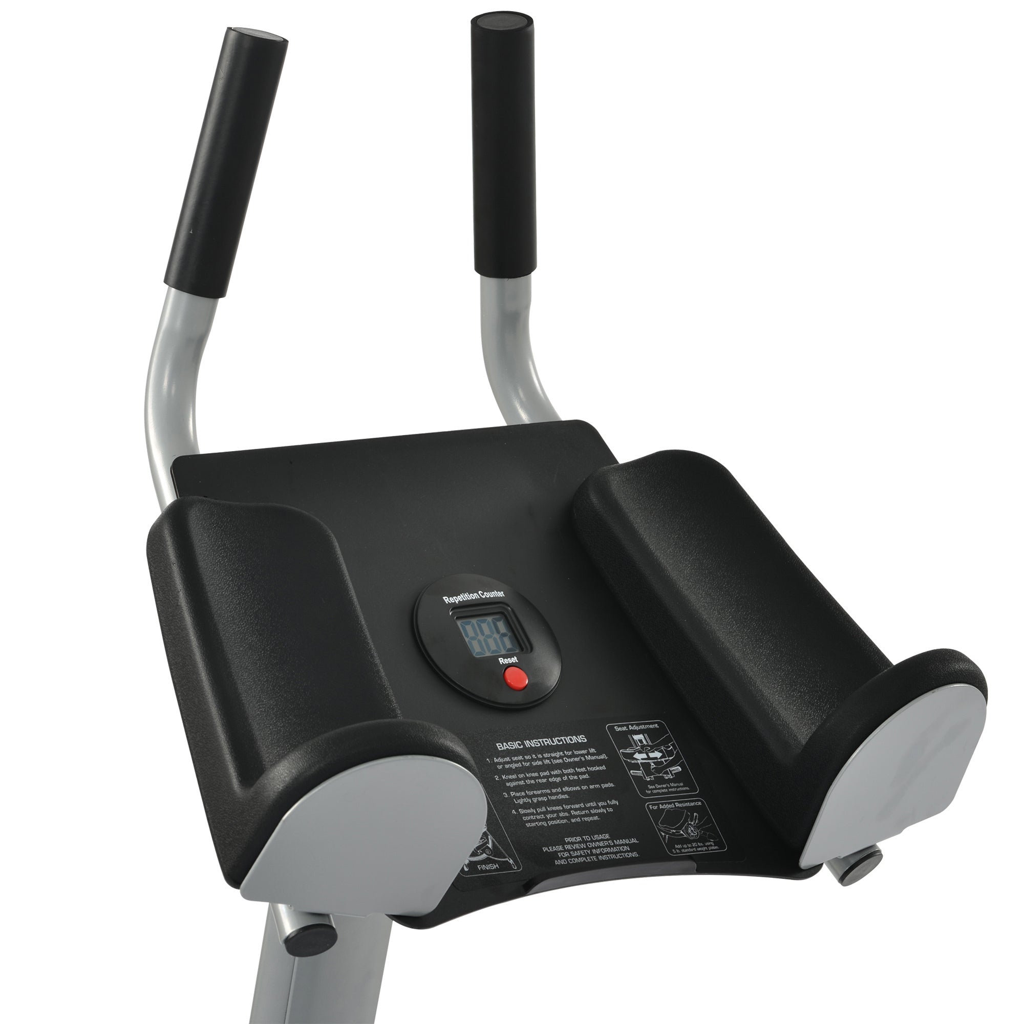 ADJUSTABLE SEAT AND DIGITAL COUNTER : The ab Abdominal device features a multi-angle adjustable seat and plate-loading posts to add extra weights.Easy-to-read digital repitition counter display keeps track of your abs / core workout for you so you can give full attention to every home exercise session.The adjustable handle fit all Arm length user.
