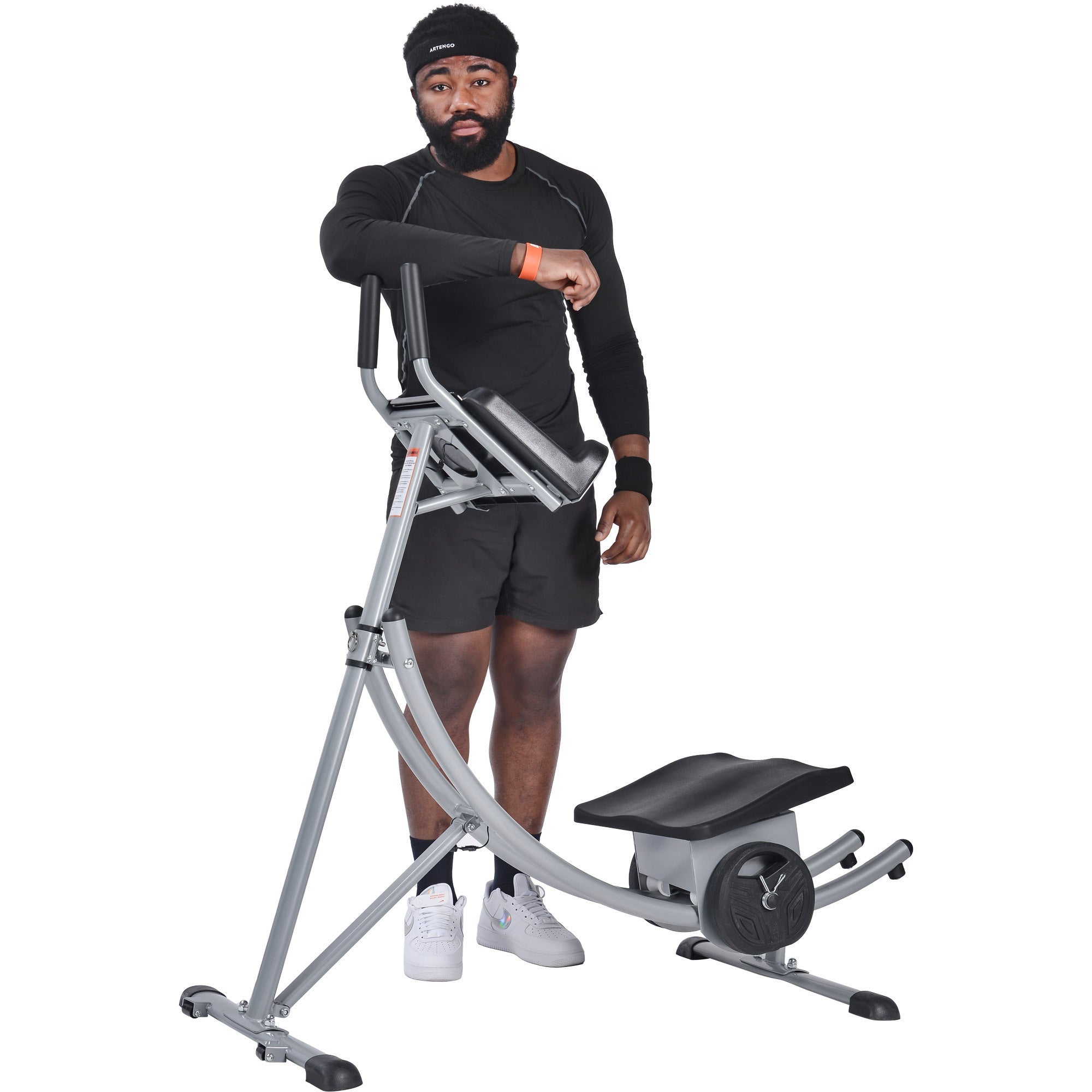BEST AB MACHINE: Constructed from steel bearings, vinyl covered molded foam arm pads and adjustable seat. This Deluxe Abdominal Crunch Coaster’s bottom-up slider motion is easy to do & easy on you, This deluxe ab machineMAX provides a comprehensive workout with virtually no stress or strain on your neck / back and is used at lots of fitness facilities,Includes: Folding design, Free-Style Seat (three position), adjustable handle, Rep Counter, and pair of Removable black weight block.