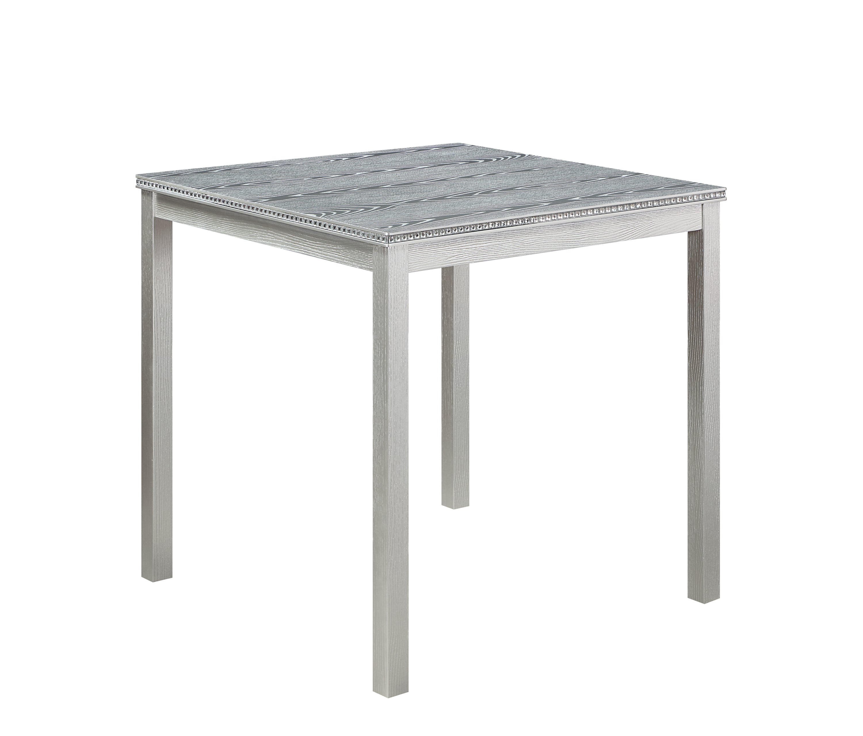 - Elegant Wooden Dining Table and Chairs: This counter height dining table and chairs set has a classic design and a clean, hard-edged layout, with the table edged with acrylic crystal crushed diamond embellishments to give it an attractive look. With clean lines, sleek modern styling and a spacious square tabletop, it is suitable for a wide range of occasions and environments and can be easily adapted to any interior style.