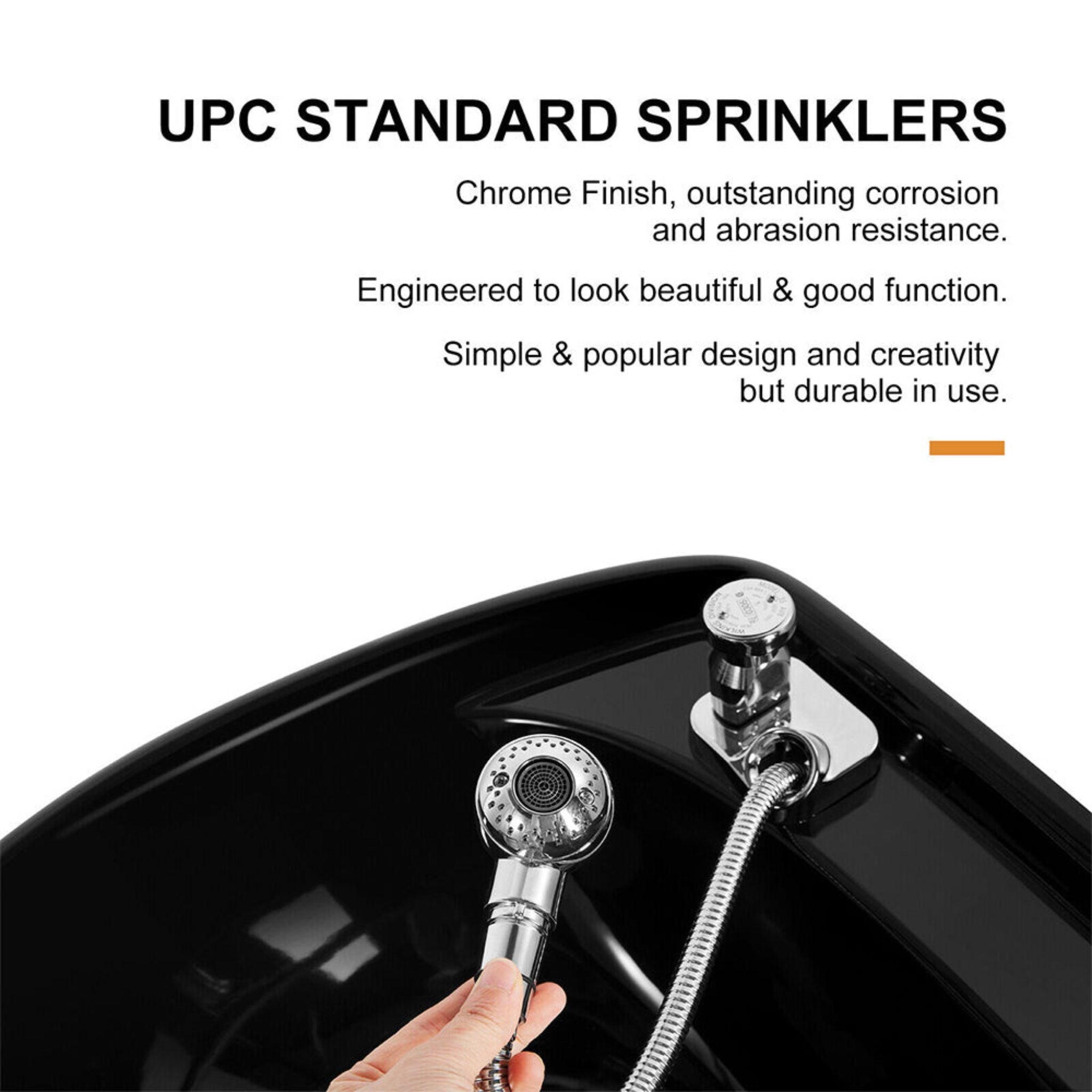 - Spray hose with shower nozzle and vacuum breaker save more water. Single lever Hot/Cold fixtures can make your work more convenient. The sink can prevent hair from clogging, and it comes with a lid for easy washing of towels.