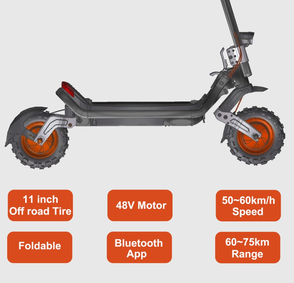 | Tyre | 11″ Pneumatic Off-road Tyre | 11″ Pneumatic Street Tyre |