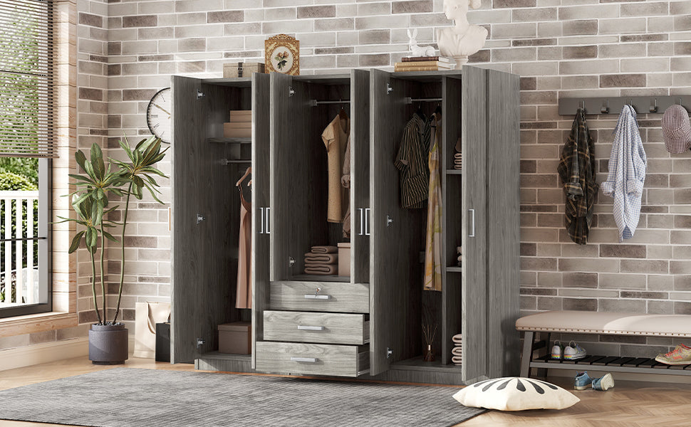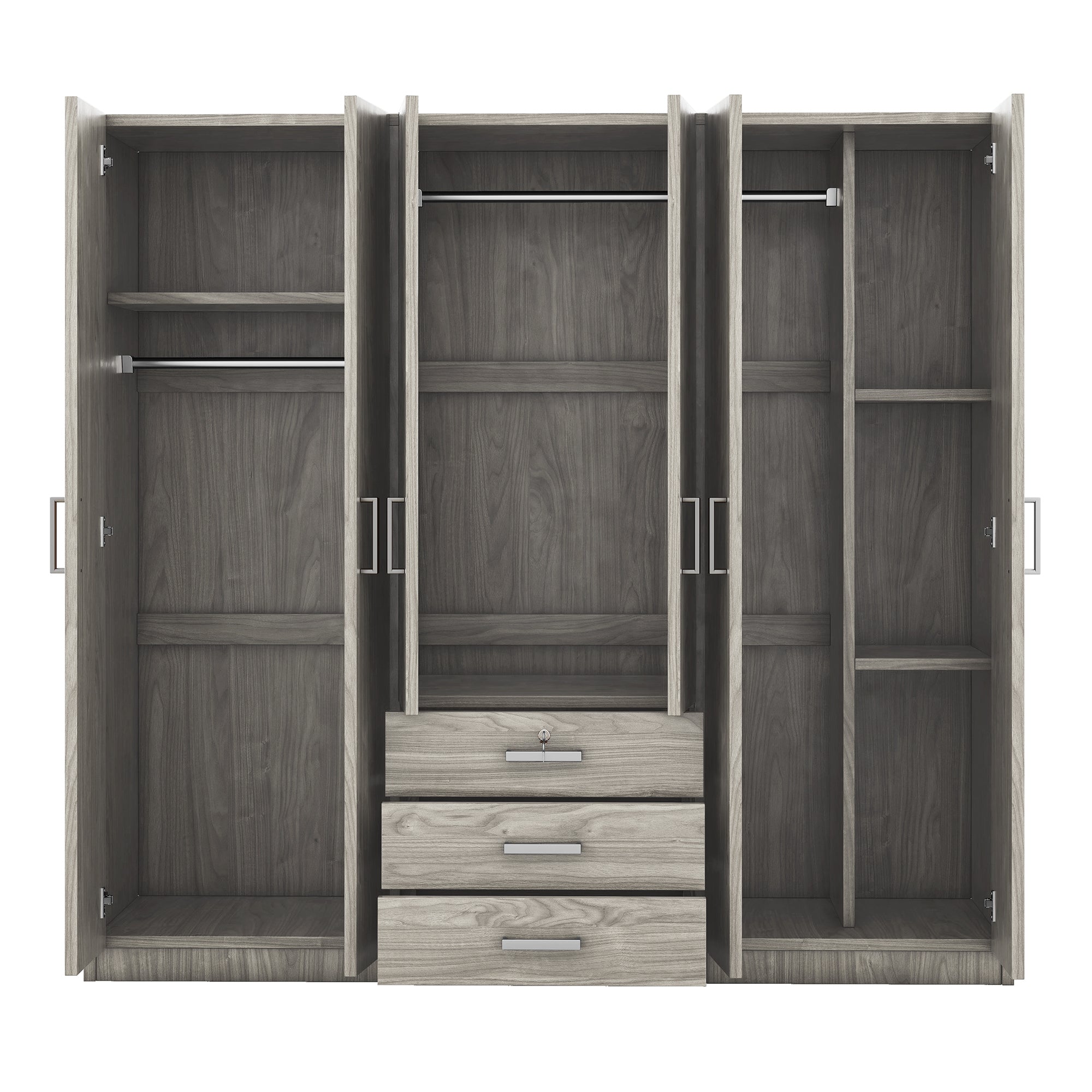 6-Doors Wooden Wardrobe Storage Space Maximization