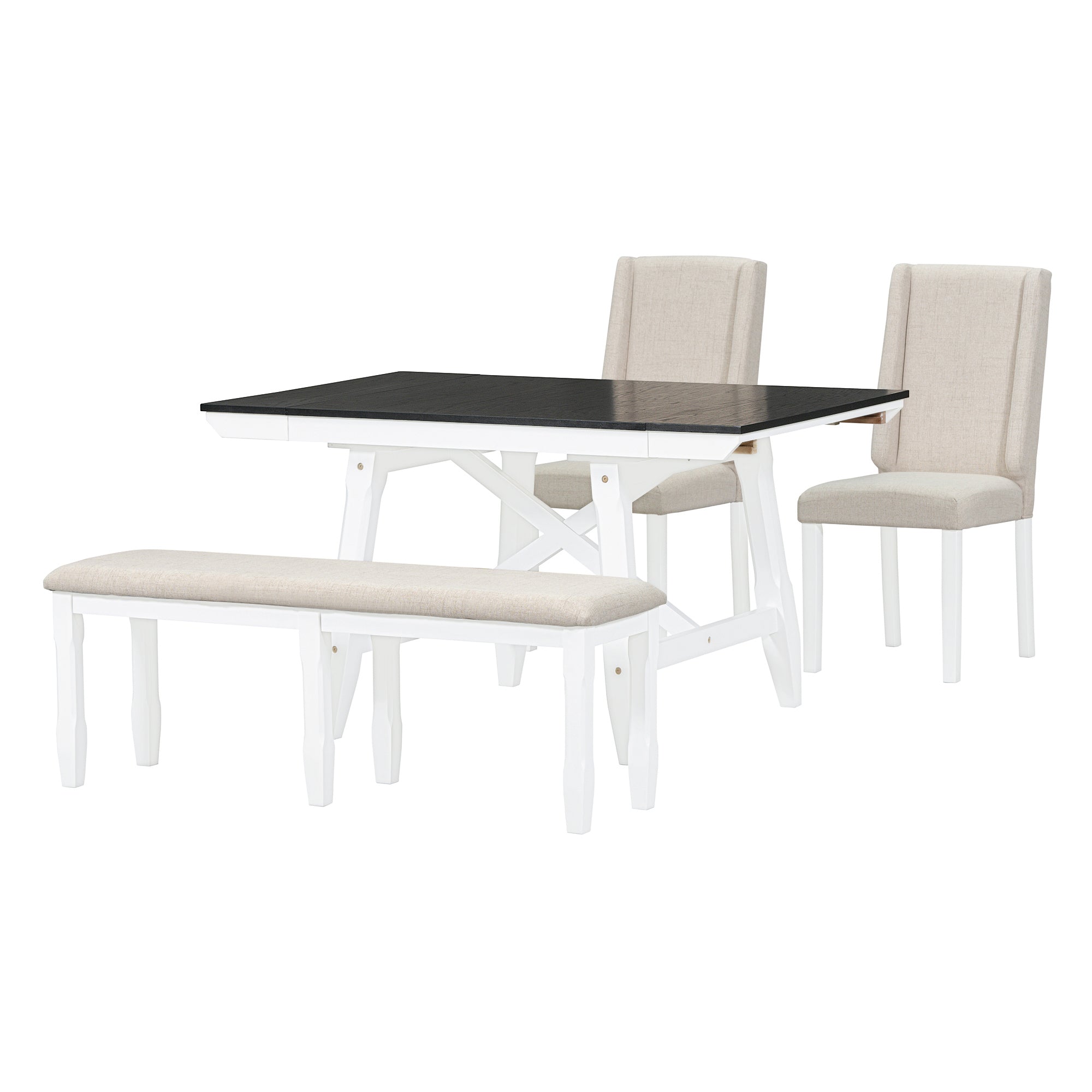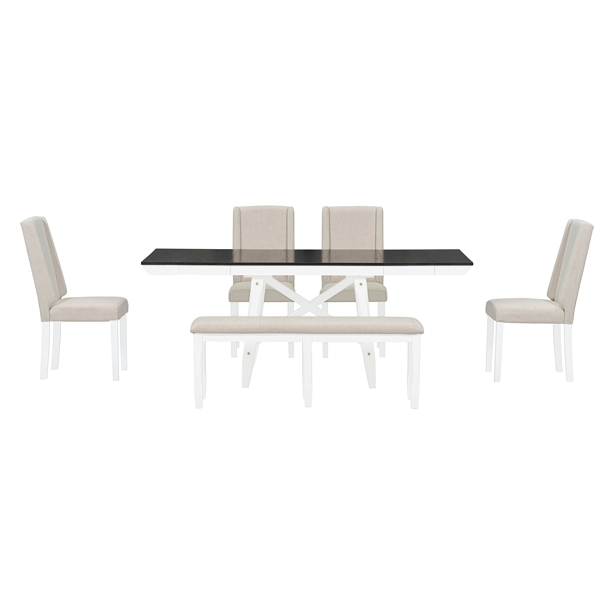 Be the first to review “6-Piece Classic Dining Table Set, Rectangular Extendable Dining Table with two 12″W Removable Leaves and 4 Upholstered Chairs & 1 Bench for Dining Room (White+Black)” Cancel reply