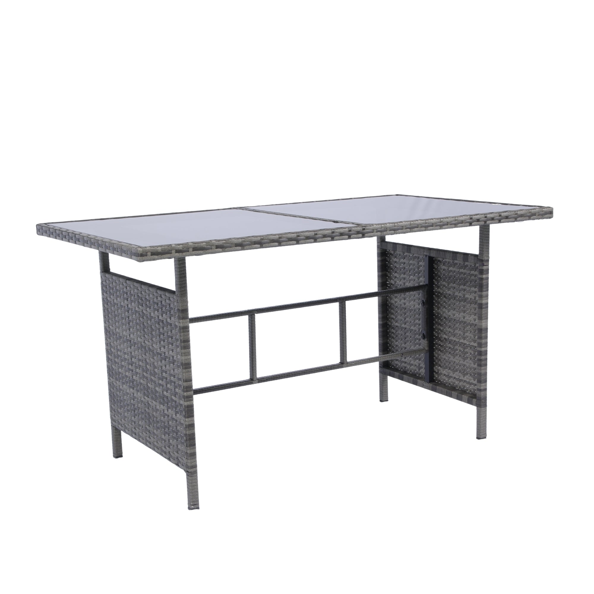 The high-quality polyester wicker fibers this 6-piece patio set are hand woven over a reinforced powder coated galvanized steel frame, offering sturdiness and durability