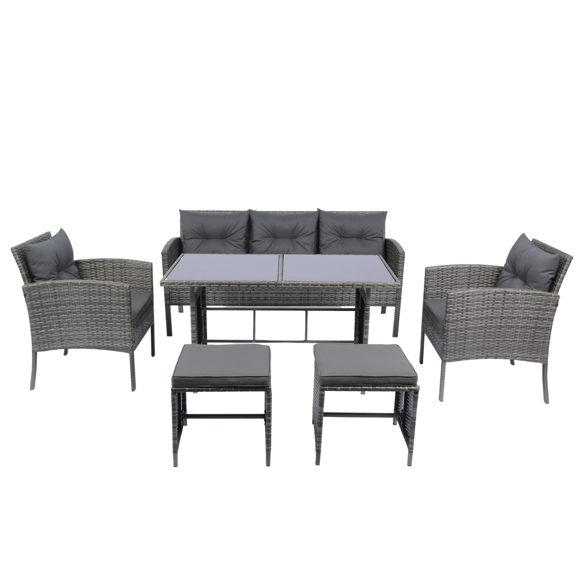 6 Piece Patio Wicker Sectional Set Patio Backyard Conversation Set Grey Wicker + Dark Grey Cushion