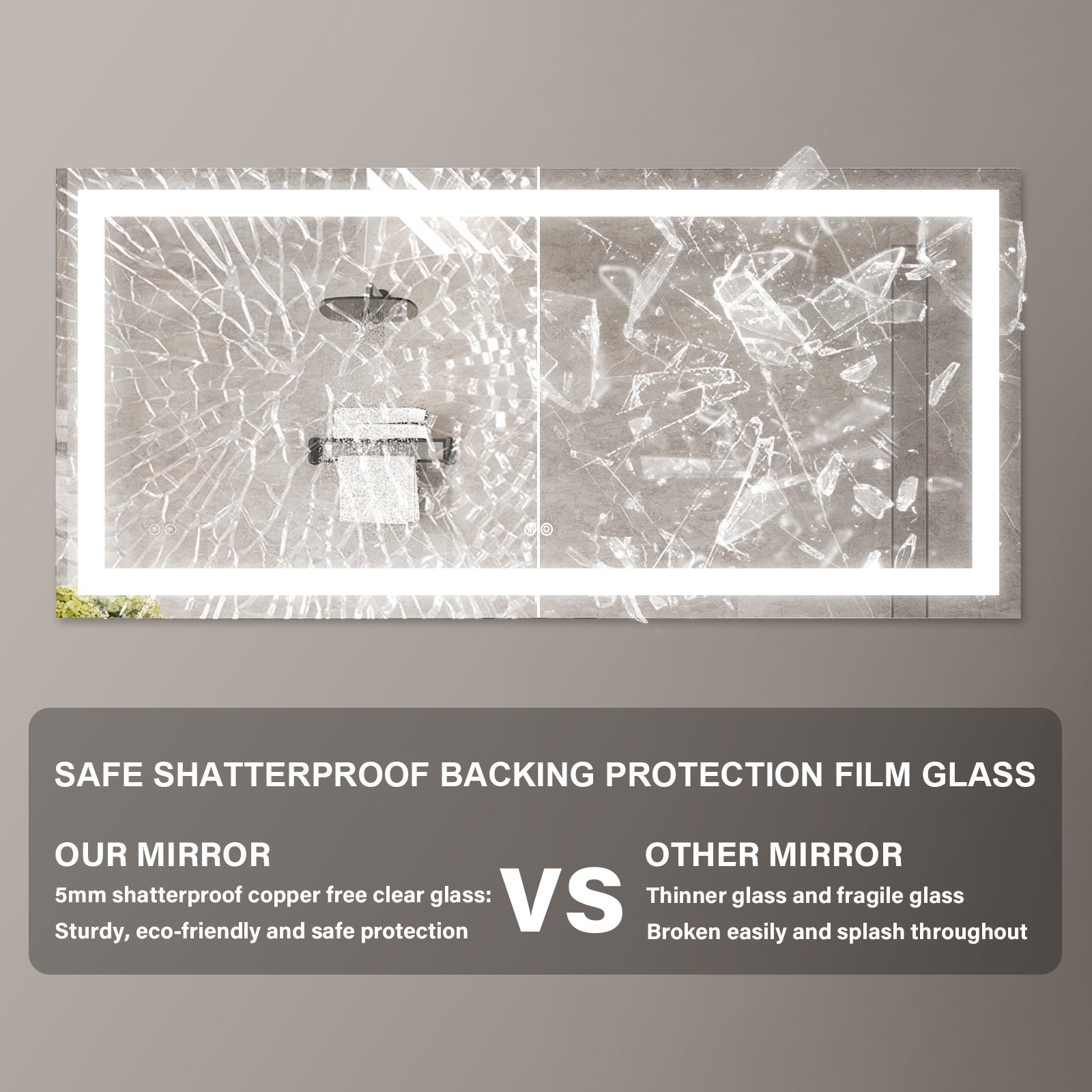 As a reflective surface, give the bathroom a better sense of light and space. It is an aluminum frame anti-fog 5mm copper-free silver mirror that is anti-corrosion and safety film backed at long last. IP44 waterproof rating ensures safe lighting in wet bathroom environments. When the bathroom is a little bit damp, your mirror will easily get wet from the bad weather and showering. And sometimes get fog at a low temperature. Wiping it with a cloth or your hand before your makeup or shaving activities does add extra work to your daily life. Now, you can choose a multi functional mirror with a fogless screen and waterproof to assist you. This mirror with built-in high-quality LED lighting with UL certified, support infinite brightness adjustment. Simply by a touch, different color temperatures can be adjusted.