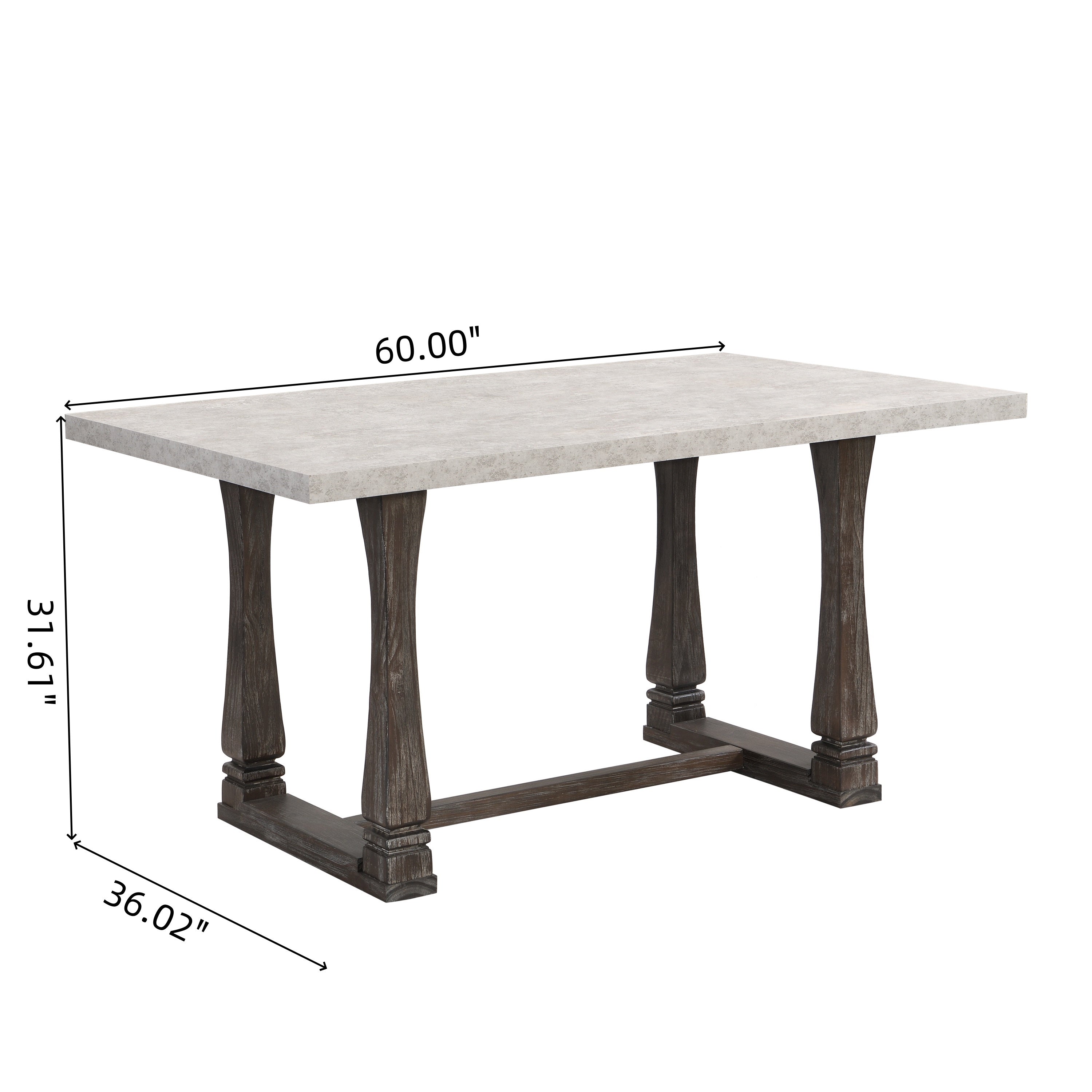 60 inch Dining Table, Classic Farmhouse Rectangle Kitchen Table Ideal for Home, Kitchen, Grey Tabletop.