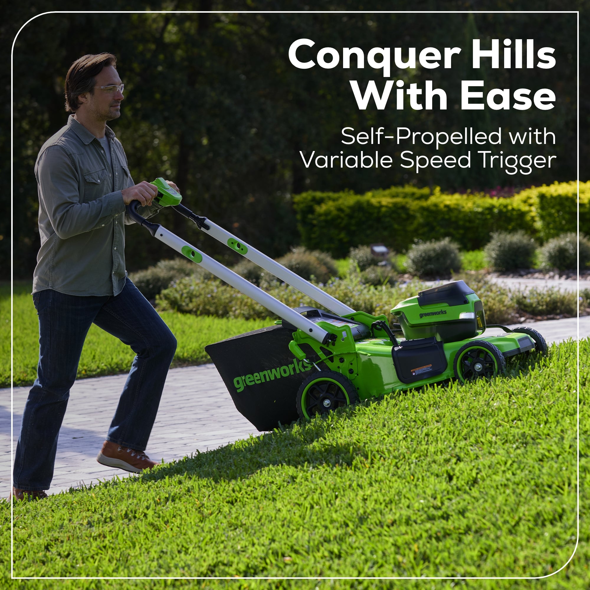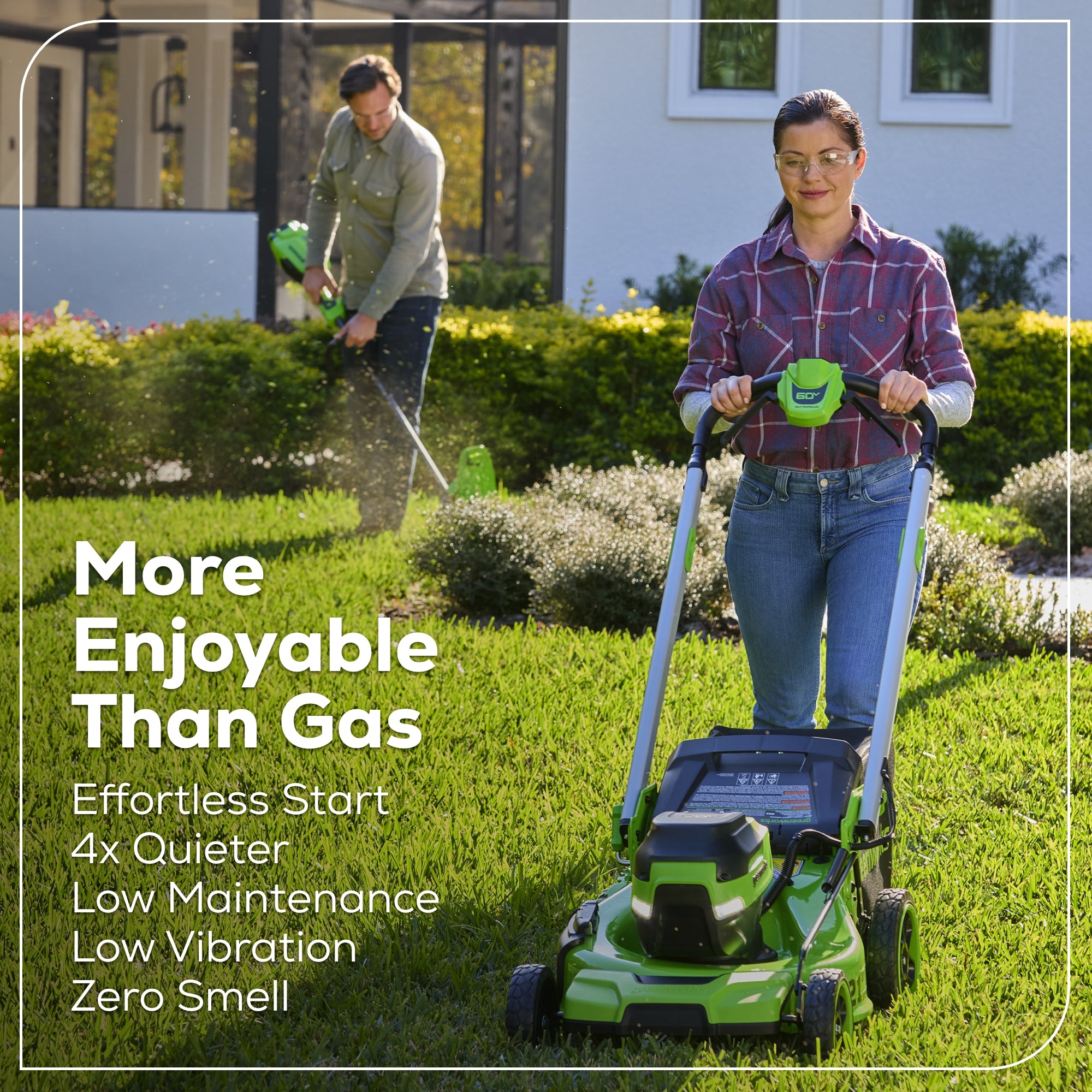 60V 21″ Cordless Battery Dual Blade Self-Propelled Mower w/ (1) 8Ah battery and 6A Charger