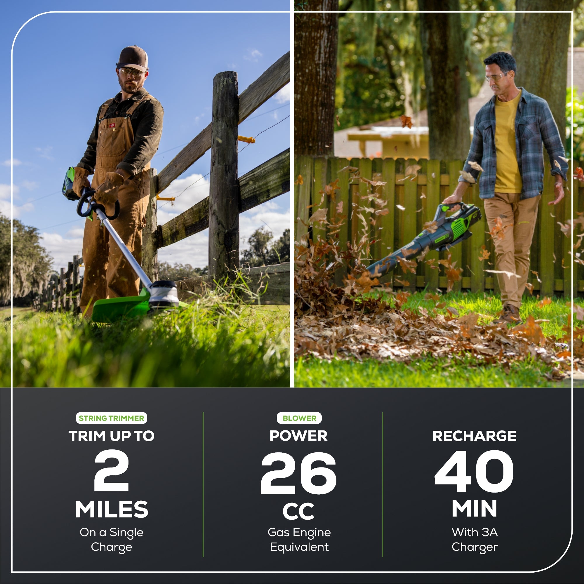 - Power 75+ Tools with any Greenworks 60V Battery