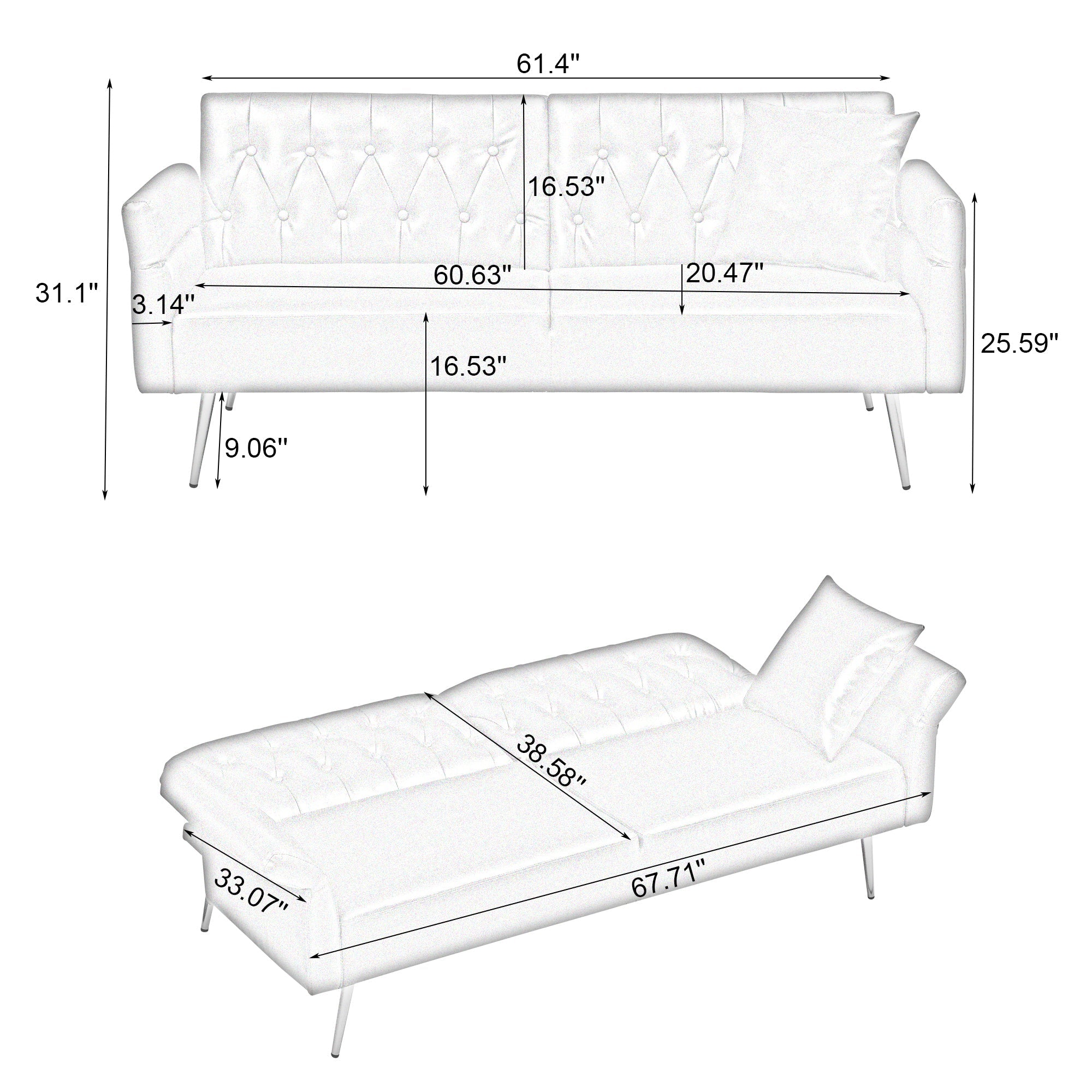 • 3 Modes convertible in seconds: With a simple folding contraption, you can convert this faux leather sofa into a large lounger with a reclined back or a comfortable bed in a snap