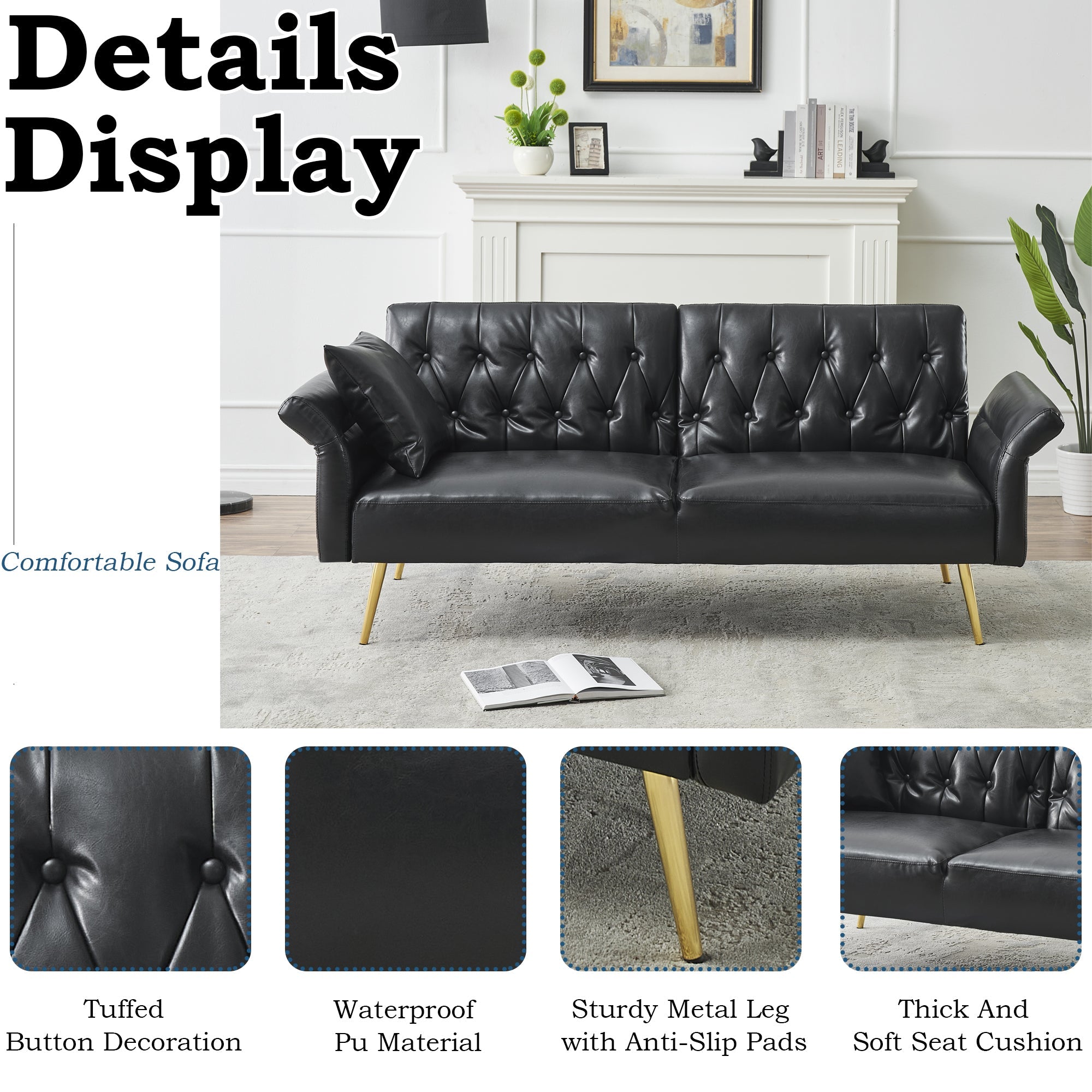 • Small space friendly: This folding sofa is perfect for the modern-day living room, ideal for small apartments, studios, offices, dorms, condos, cramped living rooms, and other limited spaces.