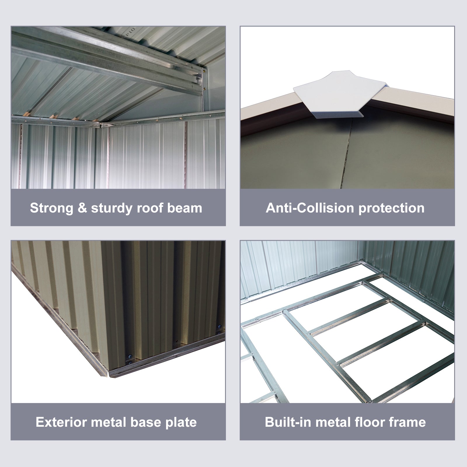 - [Robust Construction] Nothing irks a garden hobbyist more than the sight of a collapsed shed. Luckily, this shed utilizes sui generis aluminum frames which greatly increase the overall sturdiness. On top of that, the galvanized steel panels, coated with eco-friendly painting, can endure harsh weather for at least 6 years.