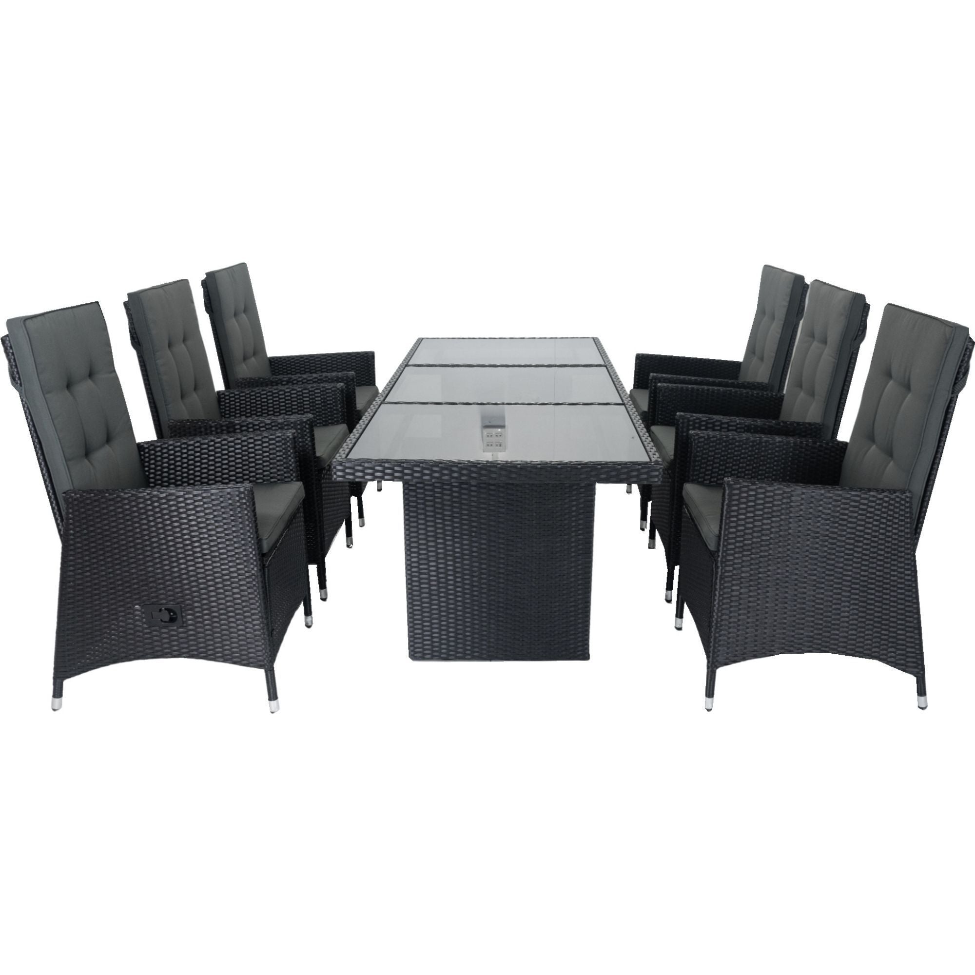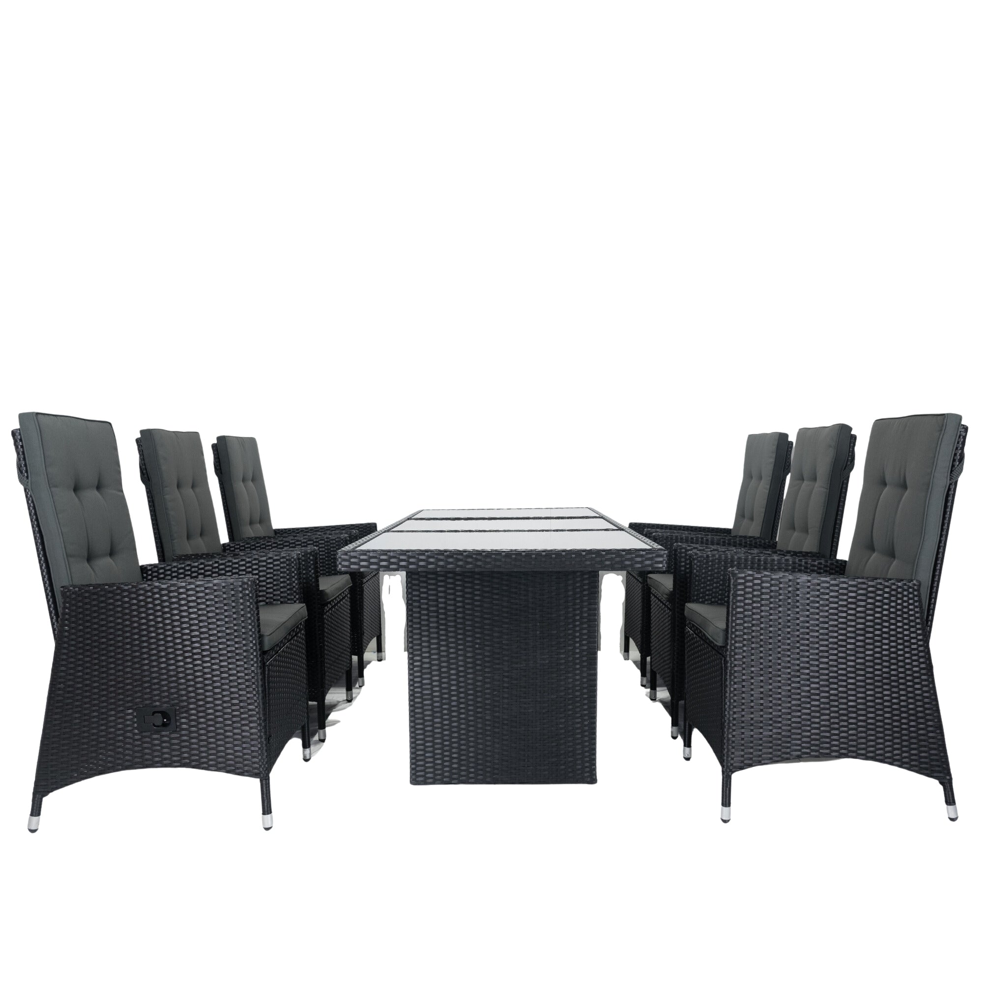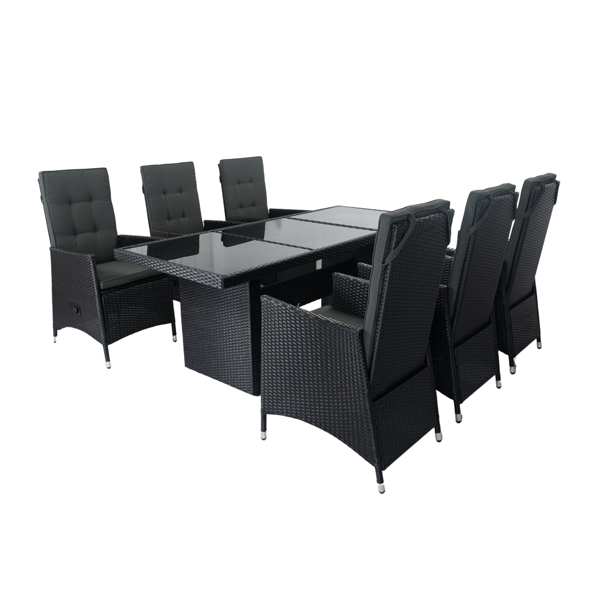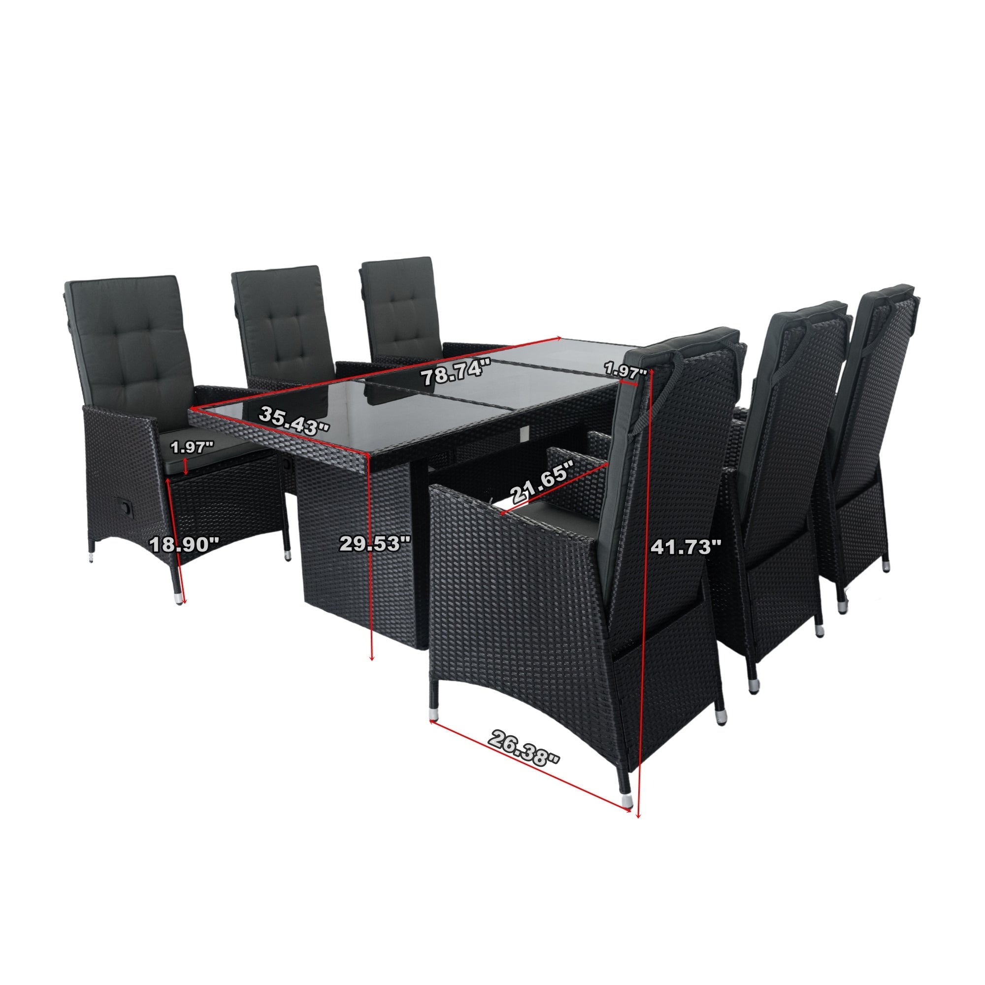 Be the first to review “7 Piece Outdoor Patio Wicker Dining Set Patio With Adjustable Backrest Black Wicker + Dark Grey Cushion” Cancel reply