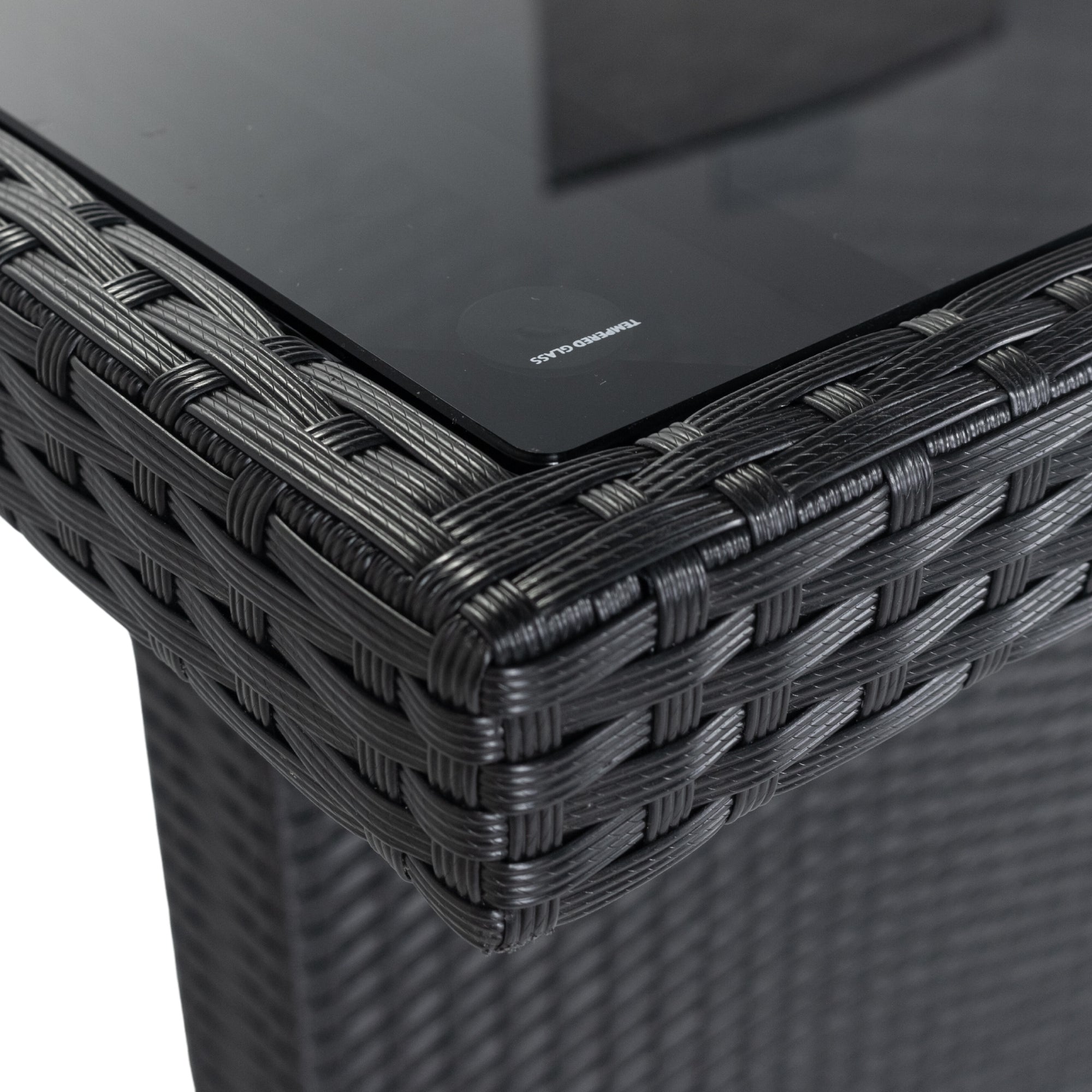Modern and stylish combination with tempered glass top make this wicker dining set look fashionable and add the beauty for your courtyard which is perfect for any outdoor and indoor use.