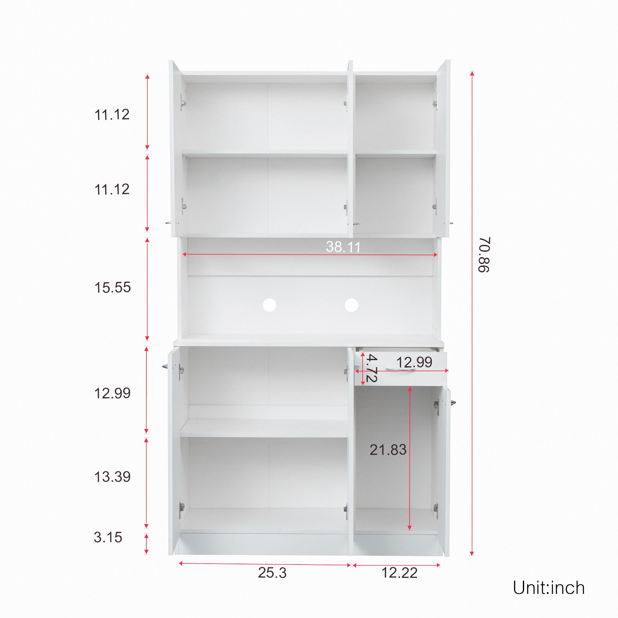 70.87″ Tall Wardrobe& Kitchen Cabinet, with 6-Doors, 1-Open Shelves and 1-Drawer for bedroom, White