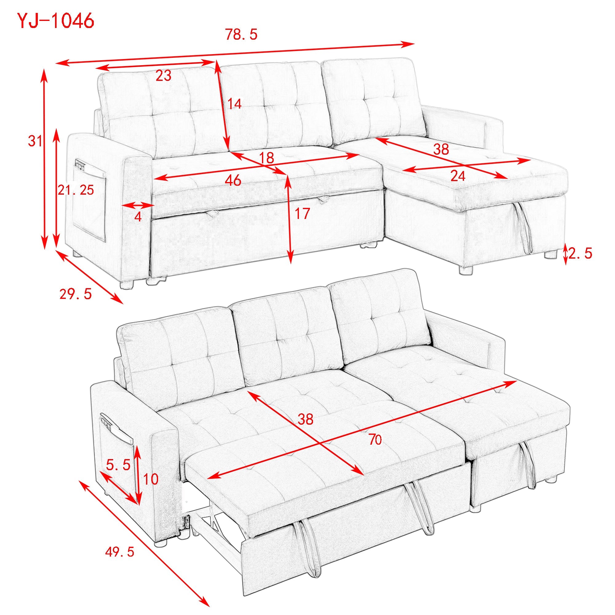 Be the first to review “78.5″ Sleeper Sofa Bed Reversible Sectional Couch with Storage Chaise and Side storage bag for Small Space Living Room Furniture Set” Cancel reply