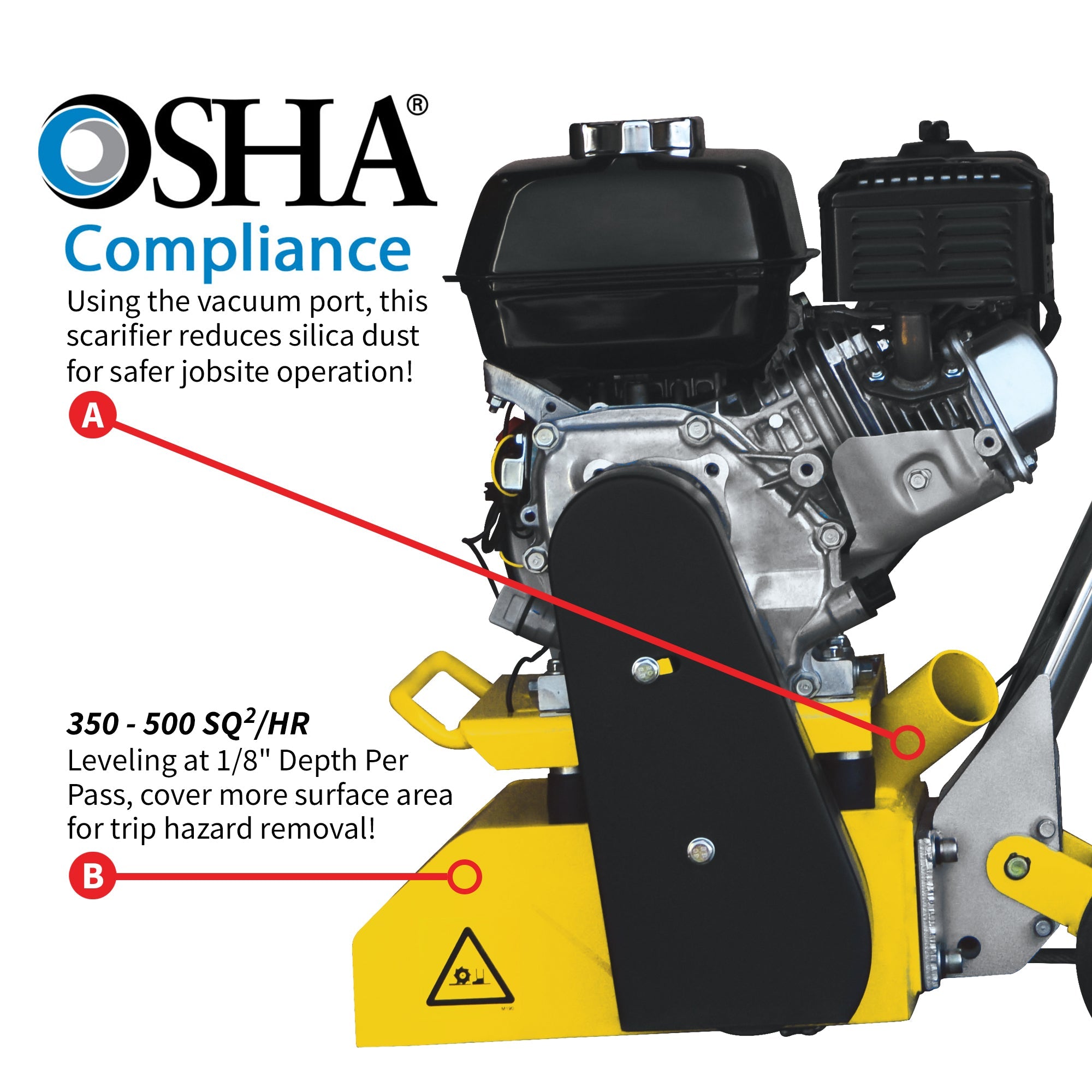 With a vacuum port designed to fit most bags and shop vacs, this scarifier reduces dust for safer operation.