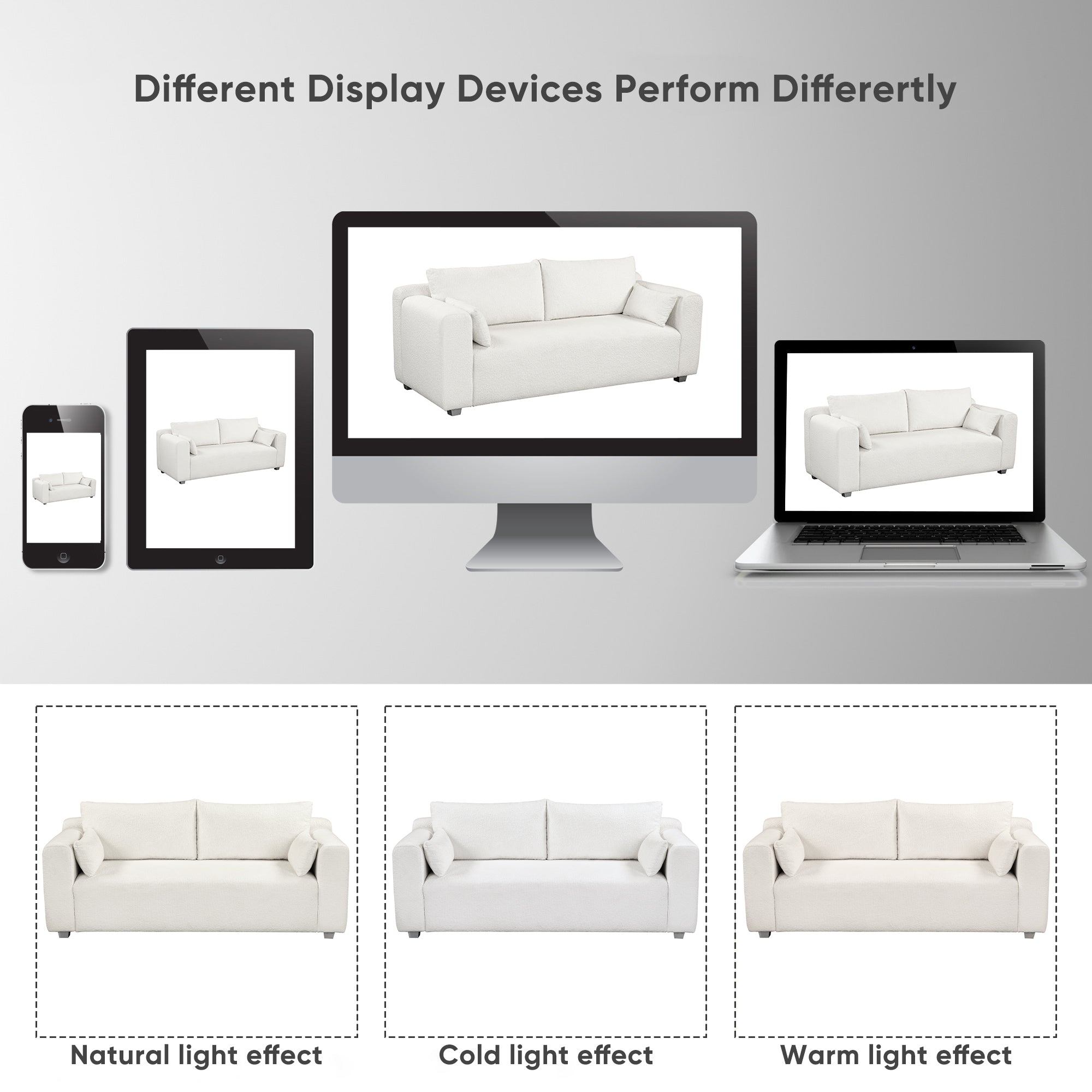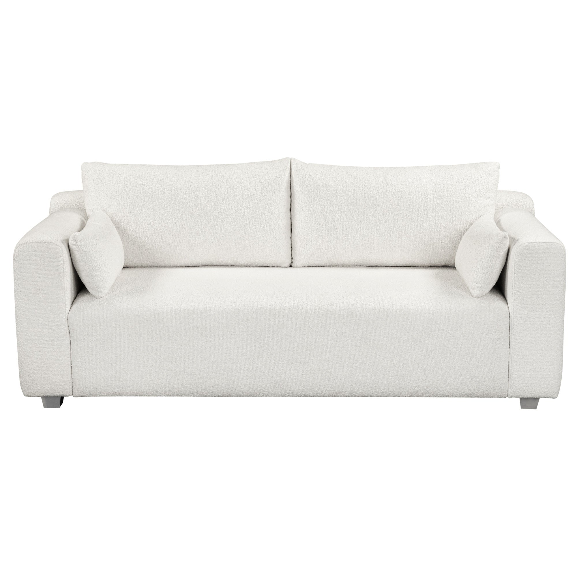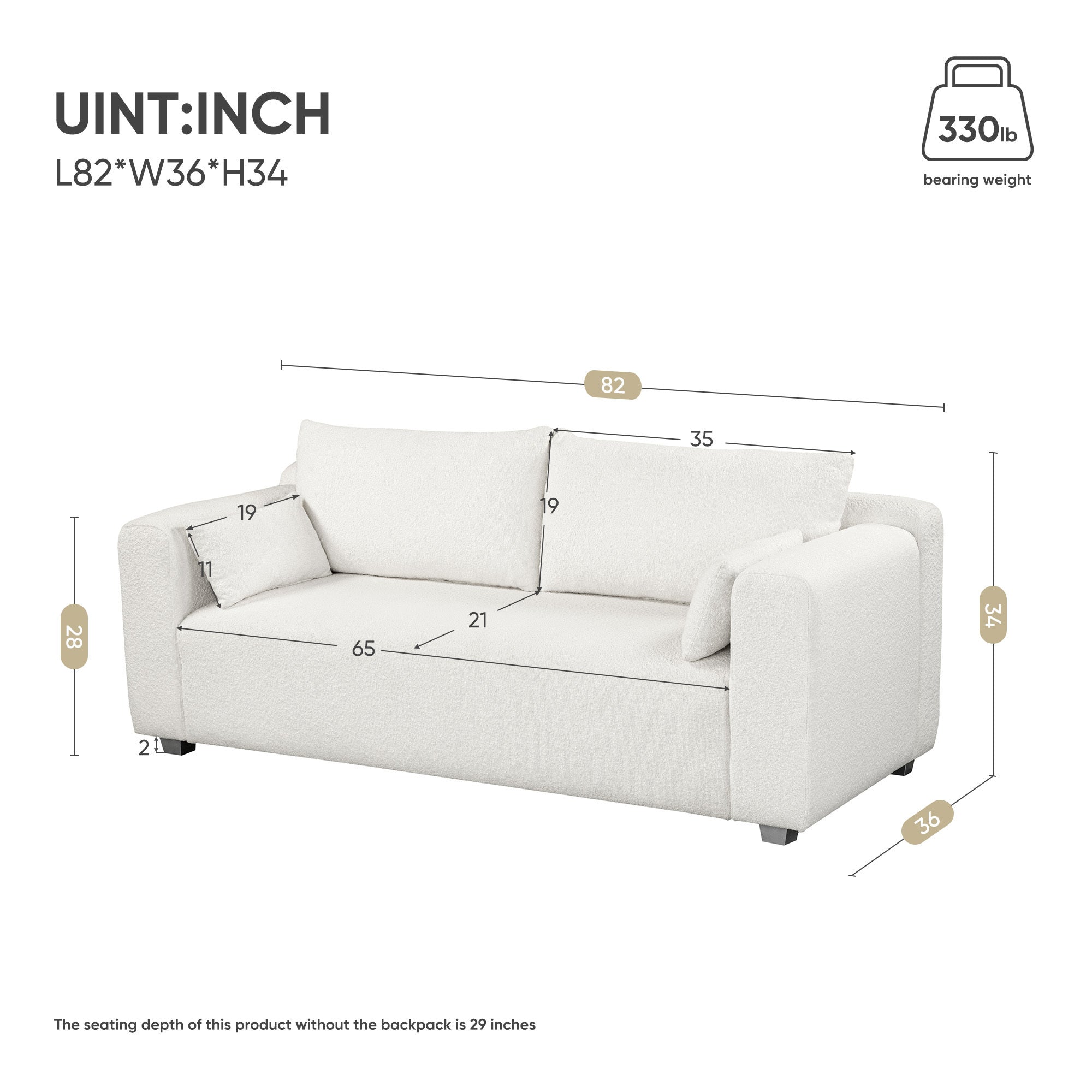 82×36″ Modern Loop Yarn Fabric Sofa, One-Piece Seat Frame, Minimalist 2-3 Seat Couch Easy to Install, Loveseats with Extra Wide Domed Arms for Living Room, Bedroom, Apartment, Office(2 Pillows)