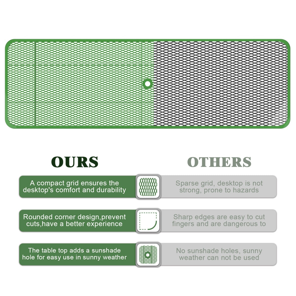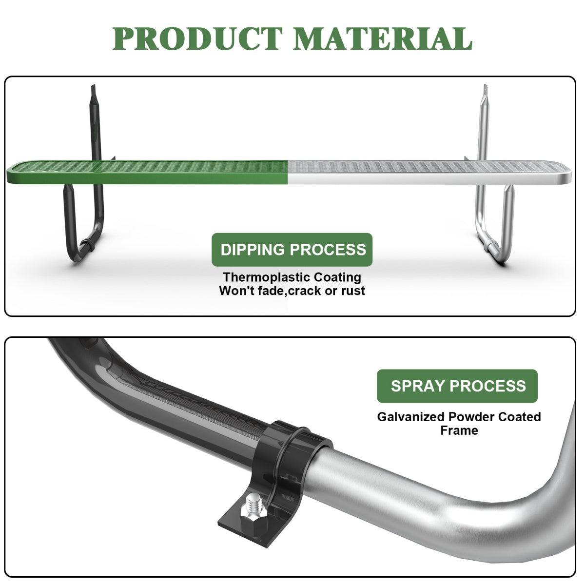 Upgrade your outdoor space with this 8ft Rectangle Picnic Table, designed for durability and style. Featuring a green tabletop with a convenient umbrella hole, it provides ample seating for gatherings. The Φ48×2.5mm zinc-sprayed, black powder-coated steel legs ensure rust resistance and stability. Ideal for parks, patios, and backyards, this weather-resistant table is perfect for dining and entertaining.