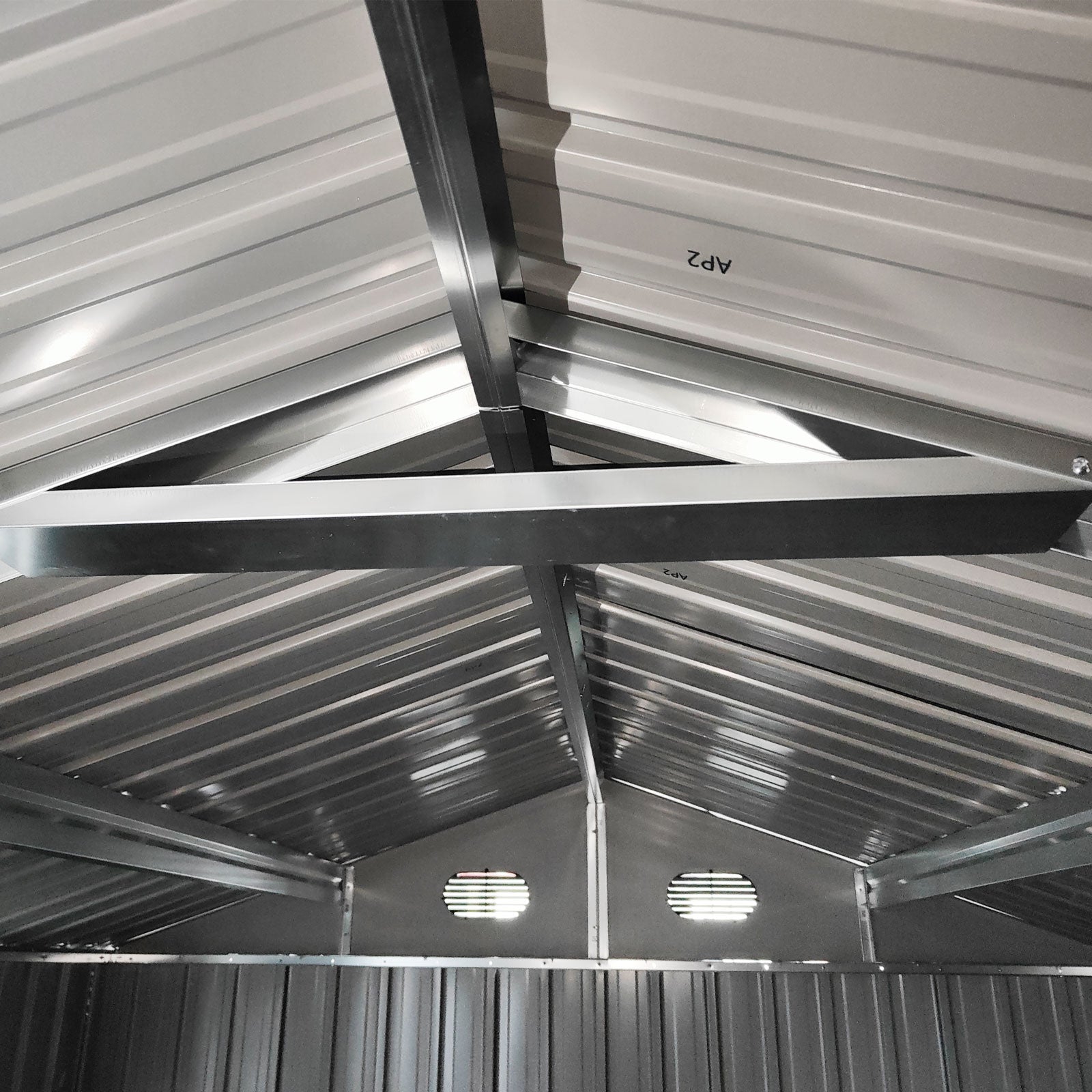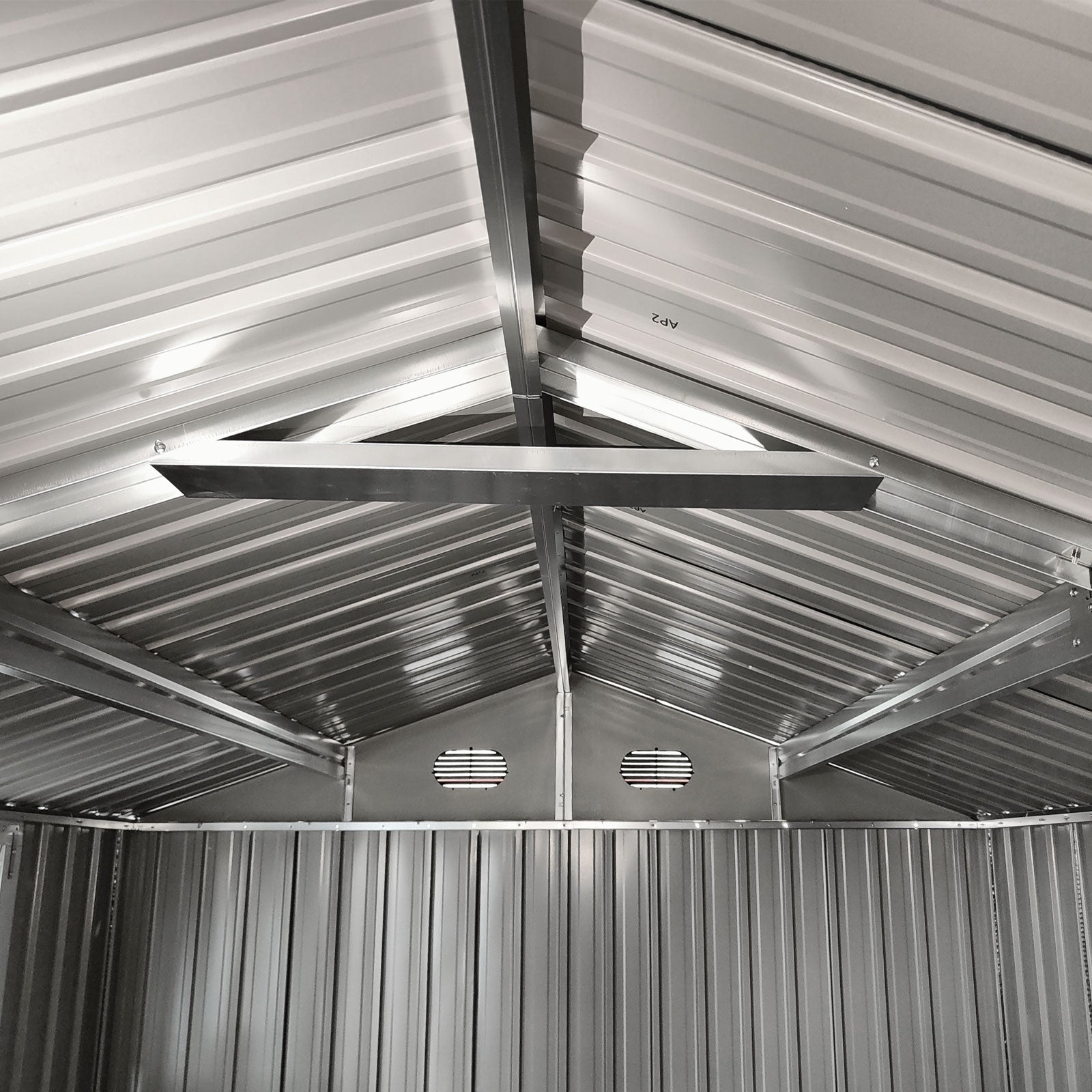 - 8×12 Ft Shed With Floor Frame: Crafted with reinforced galvanized steel, it provides a sturdy foundation for your belongings, shielding them from moisture and ensuring stability during assembly.