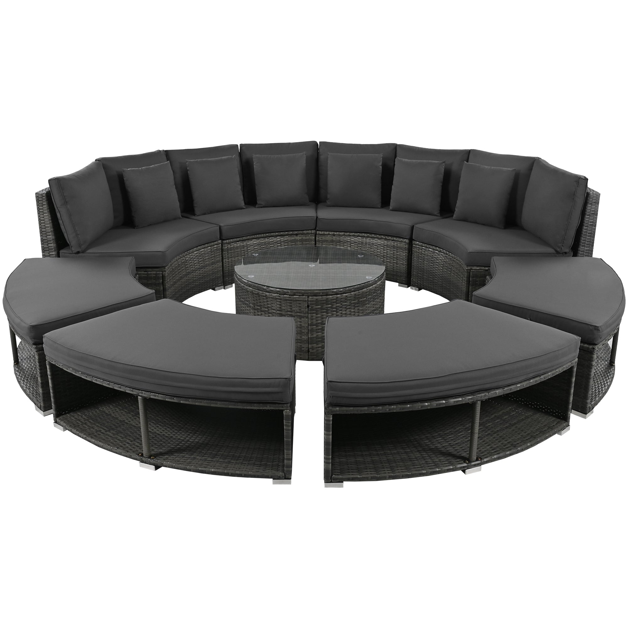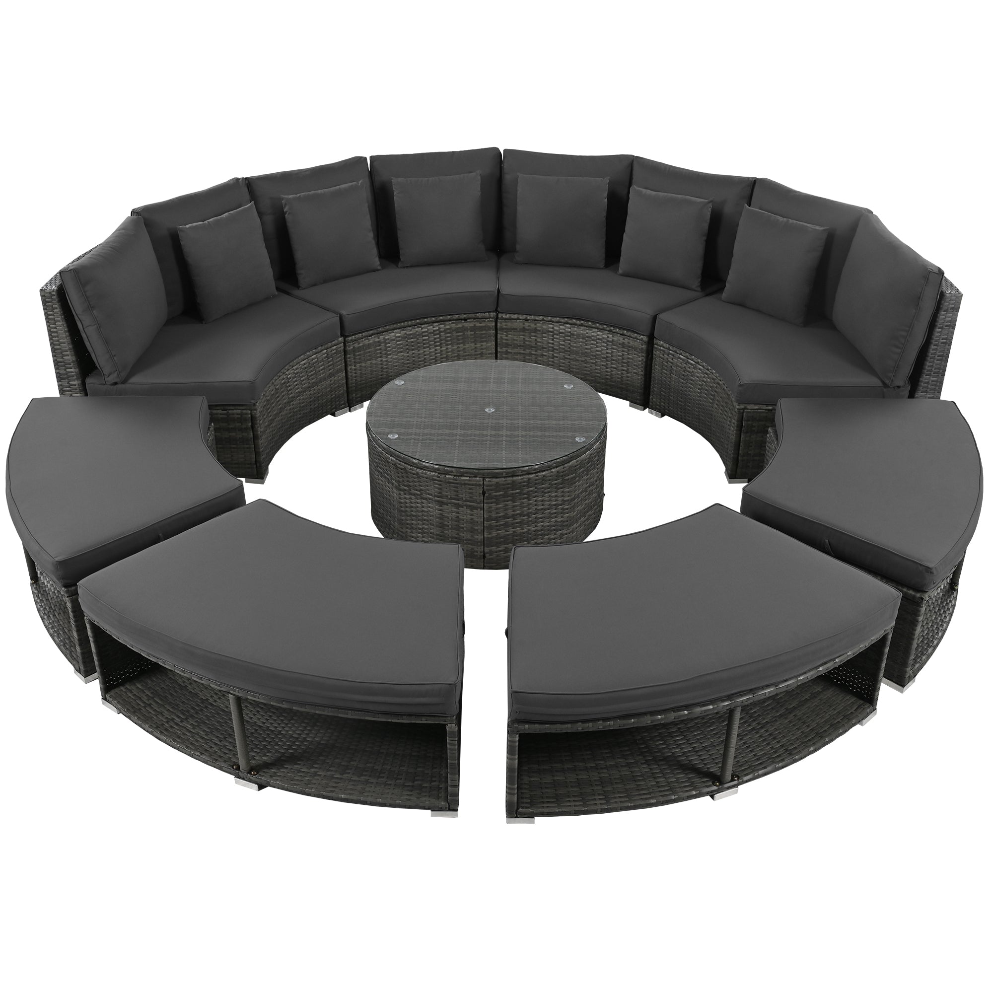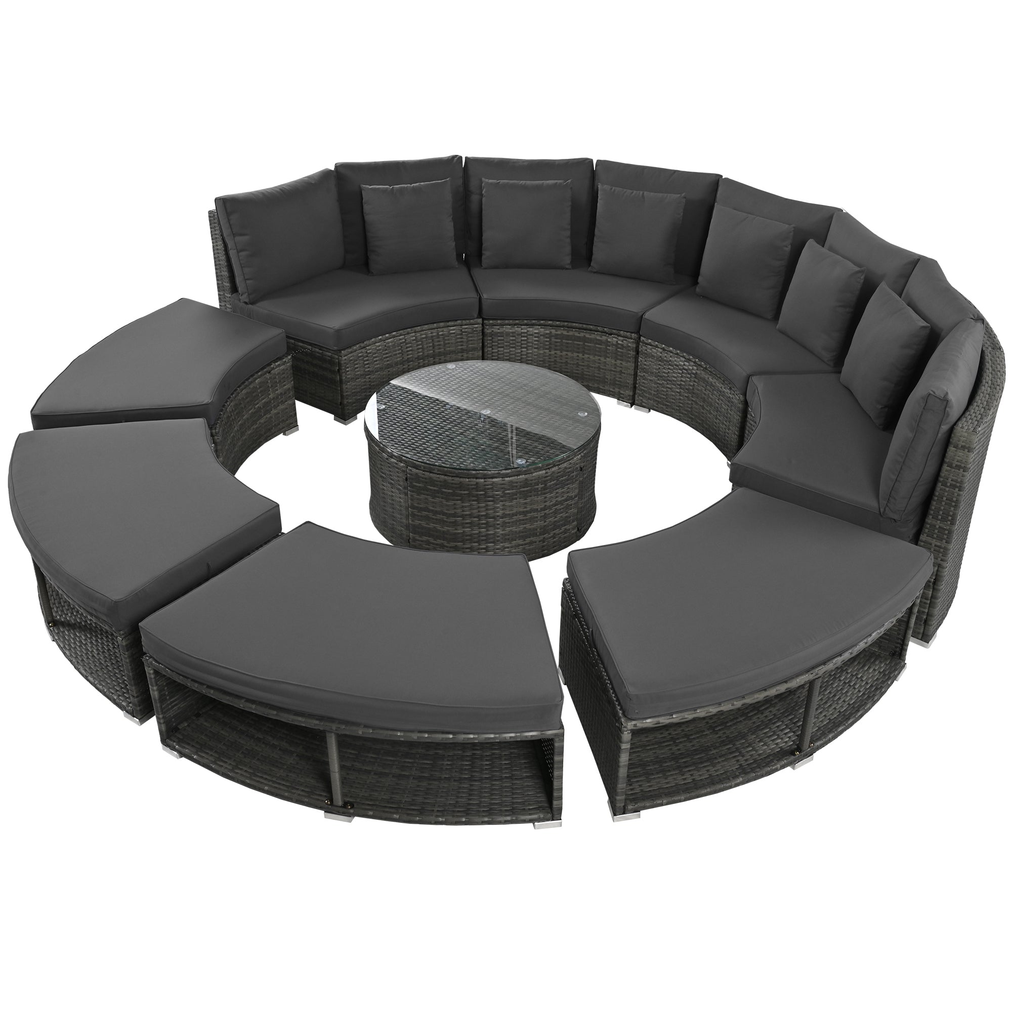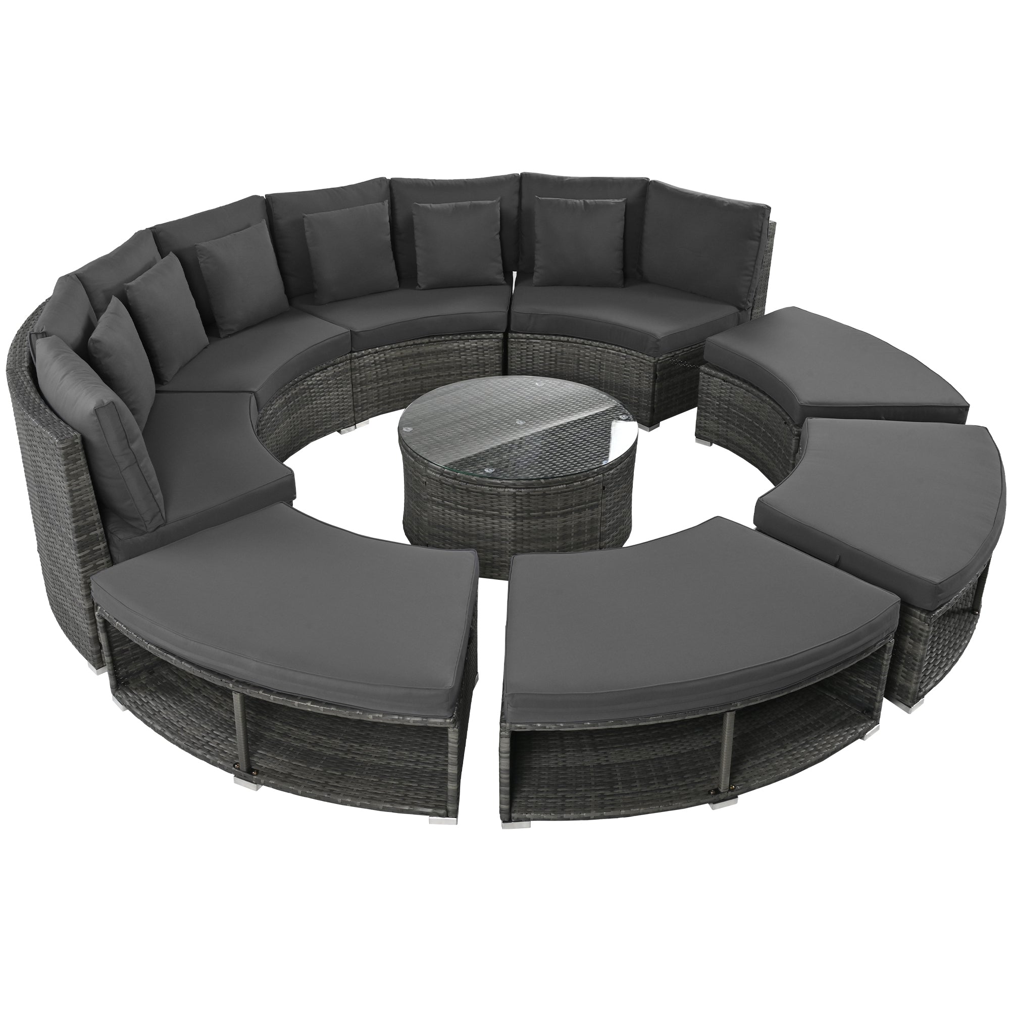 - Stylish Design – The Large Circular Sofa Set is something quite unique. Elegant rattan with low saturation cushions for a refined, textured look, Circular patio furniture is the perfect addition to outdoors.