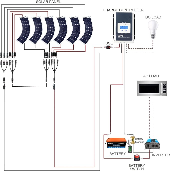 • Off-grid 12 volt Lithium battery 12V Flexible Solar Panel system