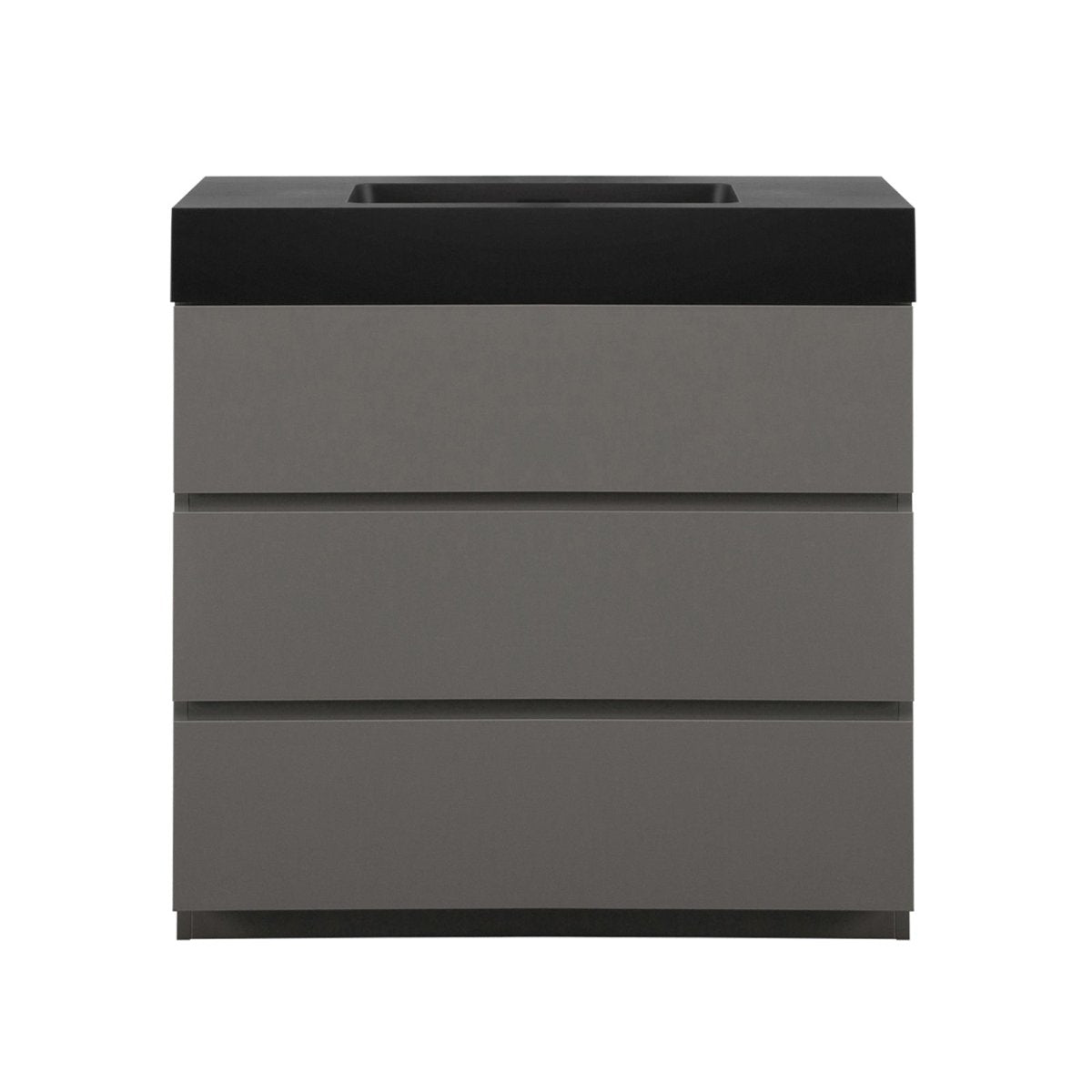 Step into a world of refined sophistication with our exquisite ALICE 36-inch Premium Modern Freestanding One-Piece Bathroom Vanity Set. Designed to elevate your bathroom experience, ALICE seamlessly combines contemporary aesthetics with intelligent functionality, ensuring that your space is both stylish and practical. Meticulously crafted with attention to detail, ALICE features a sleek and stylish matt black basin made of engineered stone, exuding an aura of understated luxury. The striking gray finish adds a touch of modernity, effortlessly complementing any bathroom decor and creating a captivating focal point that will leave your guests in awe.