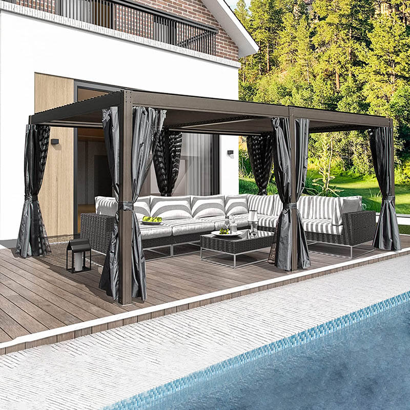 Indulge in the luxury of seclusion and tranquility within the haven of your outdoor space. The Domi Louvered Pergola comes complete with curtains and netting, offering you the ultimate privacy shield. Whether you seek a serene retreat for solitary contemplation or a cozy gathering space for cherished moments with loved ones, these elegant and functional additions allow you to create your desired ambiance effortlessly. Safeguard against prying eyes, while still relishing in the beauty of the surrounding landscape, with the Domi Outdoor Living Louvered Pergola.